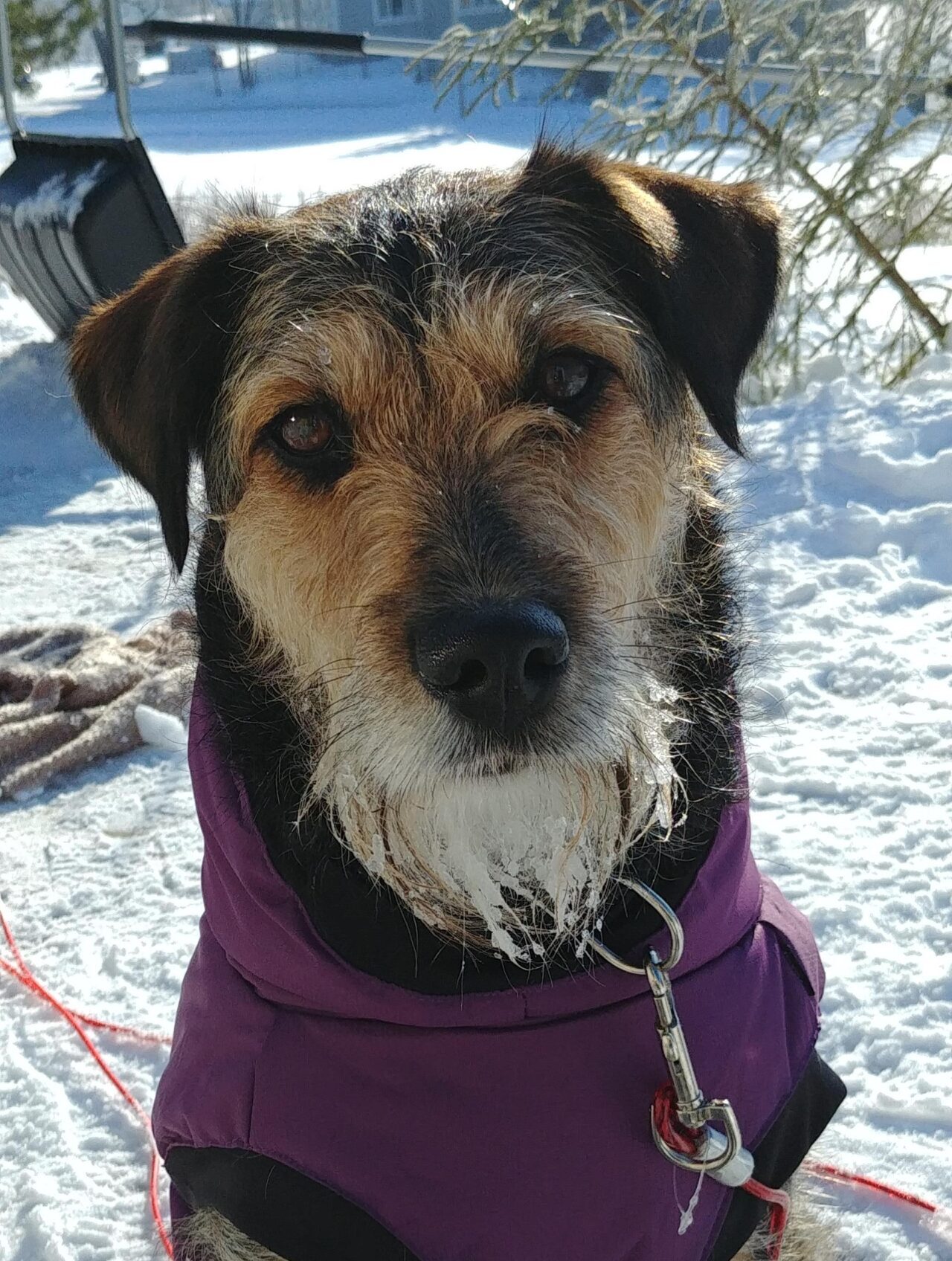 Hennes första vinter med snö var magiskt att få uppleva, jagade barnens snöbollar och grävde nosen långt ner i snödrivan. Hon uppskattar många och långa promenader och går lika fint vare sig det är vuxna eller barn som håller kopplet.