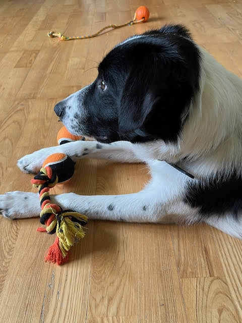 Apple kom till oss den 31 maj 2025. Han är en glad kille som älskar människor och djur. Mest av allt tycker han om att leka, lära sig saker och att springa fort på ängarna vid vår gård. Han trivs och mår bra.