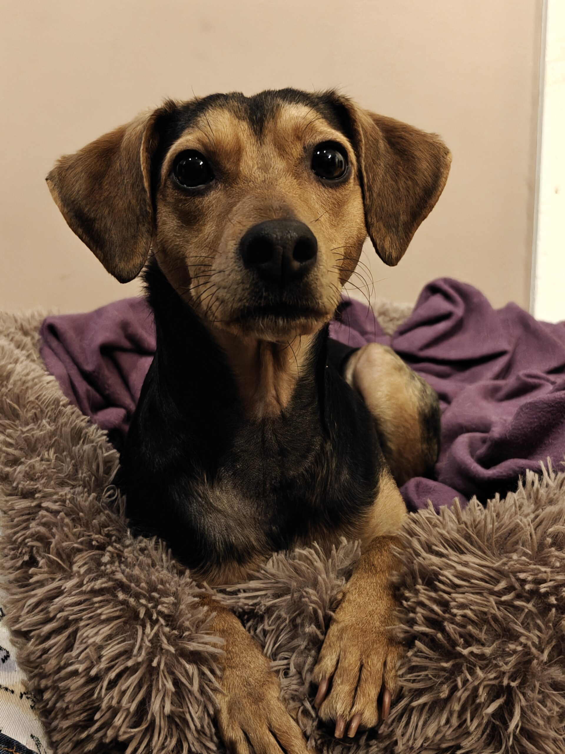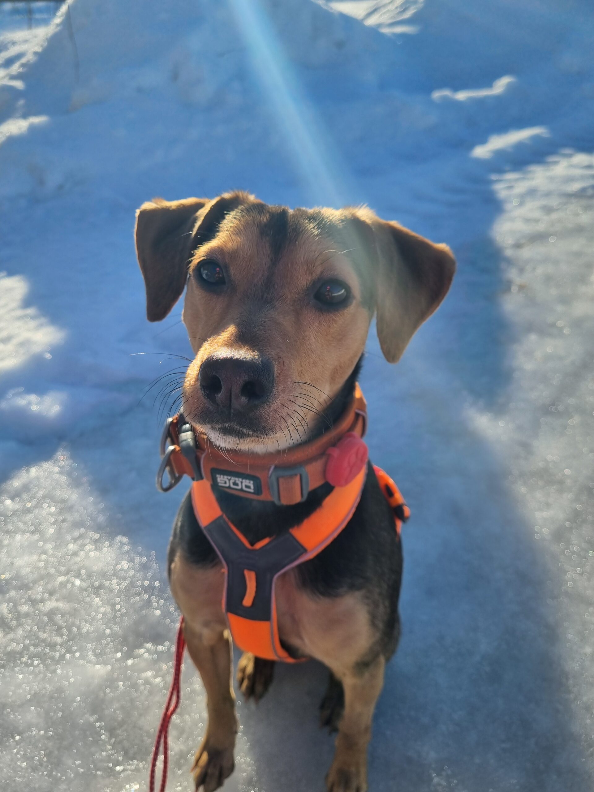 Cinna är en glad, pigg och härlig tjej som alltid vill följa med på äventyr. Hon är med på våra träningspass, kontorsjobb, resor och gårdsjobb – hon följer med på allt i livet helt enkelt. Hon kom till oss i september 2024 och var då rädd för det mesta. Numera åker hon alla möjliga fordon – bil, tåg, buss, traktor, fyrhjuling och tunnelbana. Hon tycker om viltspår, nosework och draghundsport. Vi bor på landet och hennes syskon här hemma är två katter som vi adopterat från ett katthem.