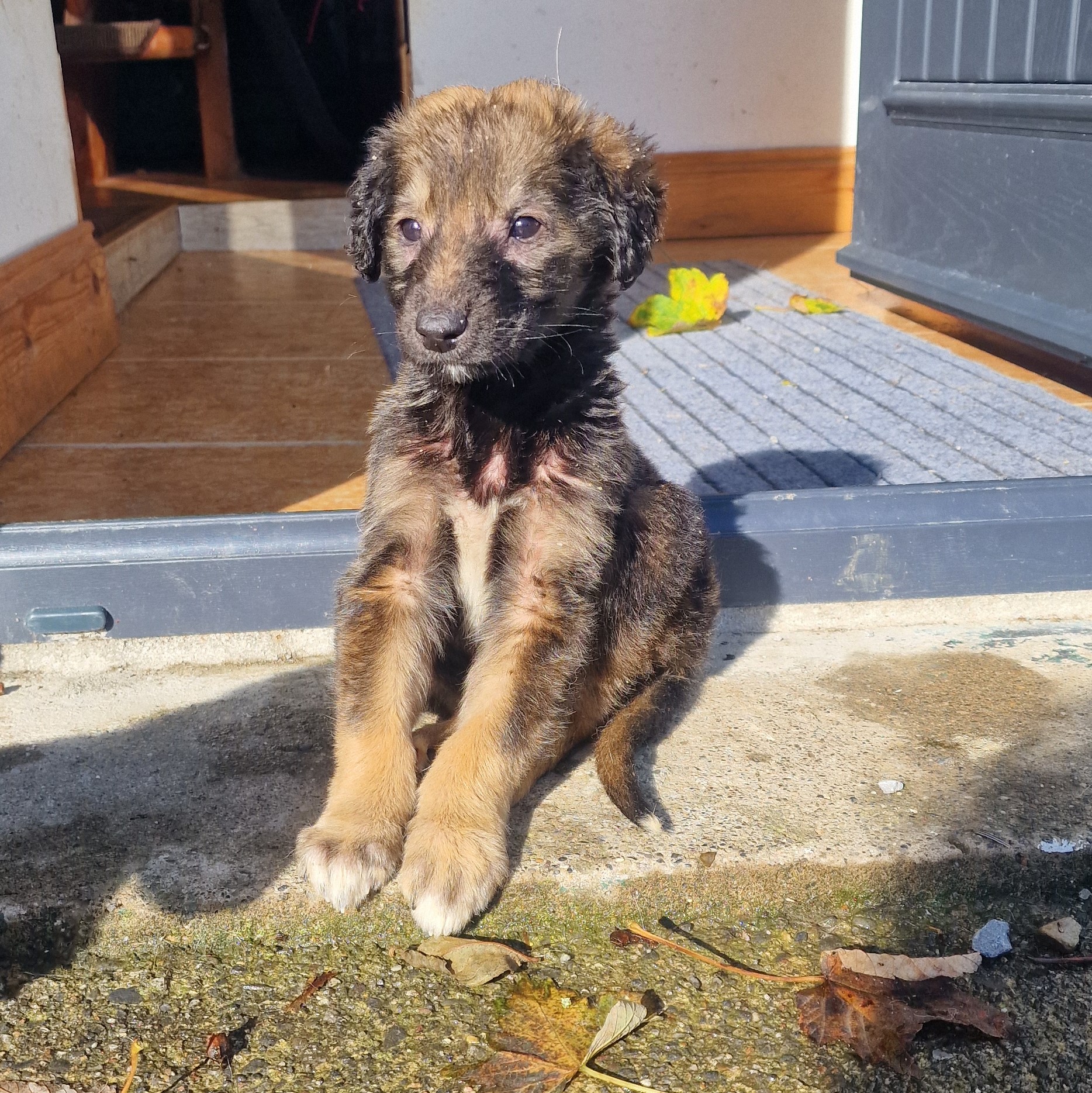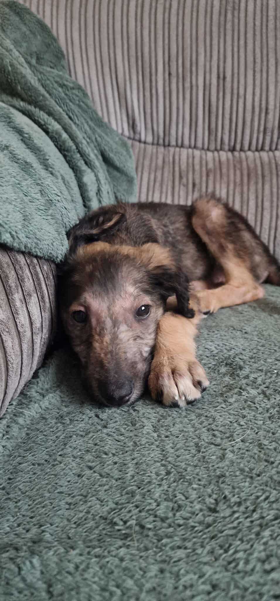 Abby, Ace och Axel hittades på Irland av en förbipasserande där de låg i en kartong inkastad i en buske. De var utmärglade och fulla av mask, loppor och skabb, som de behandlats för. De lämnades in till ett rescue och befinner sig nu i ett jourhem.