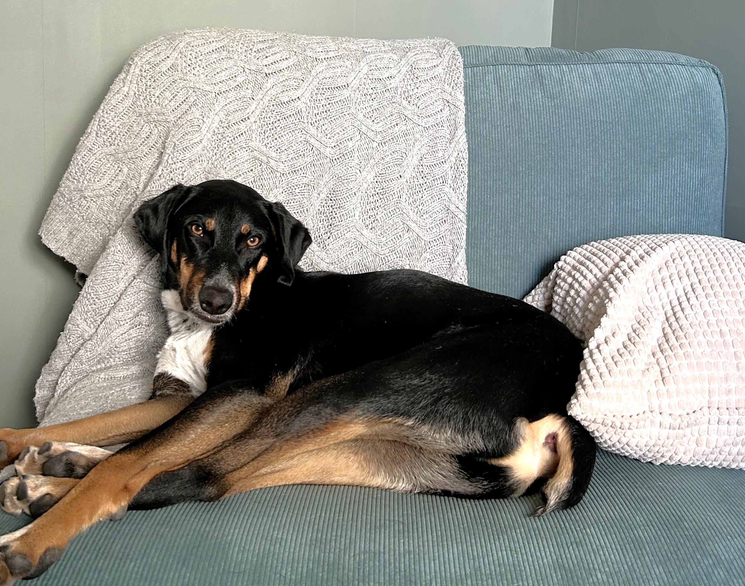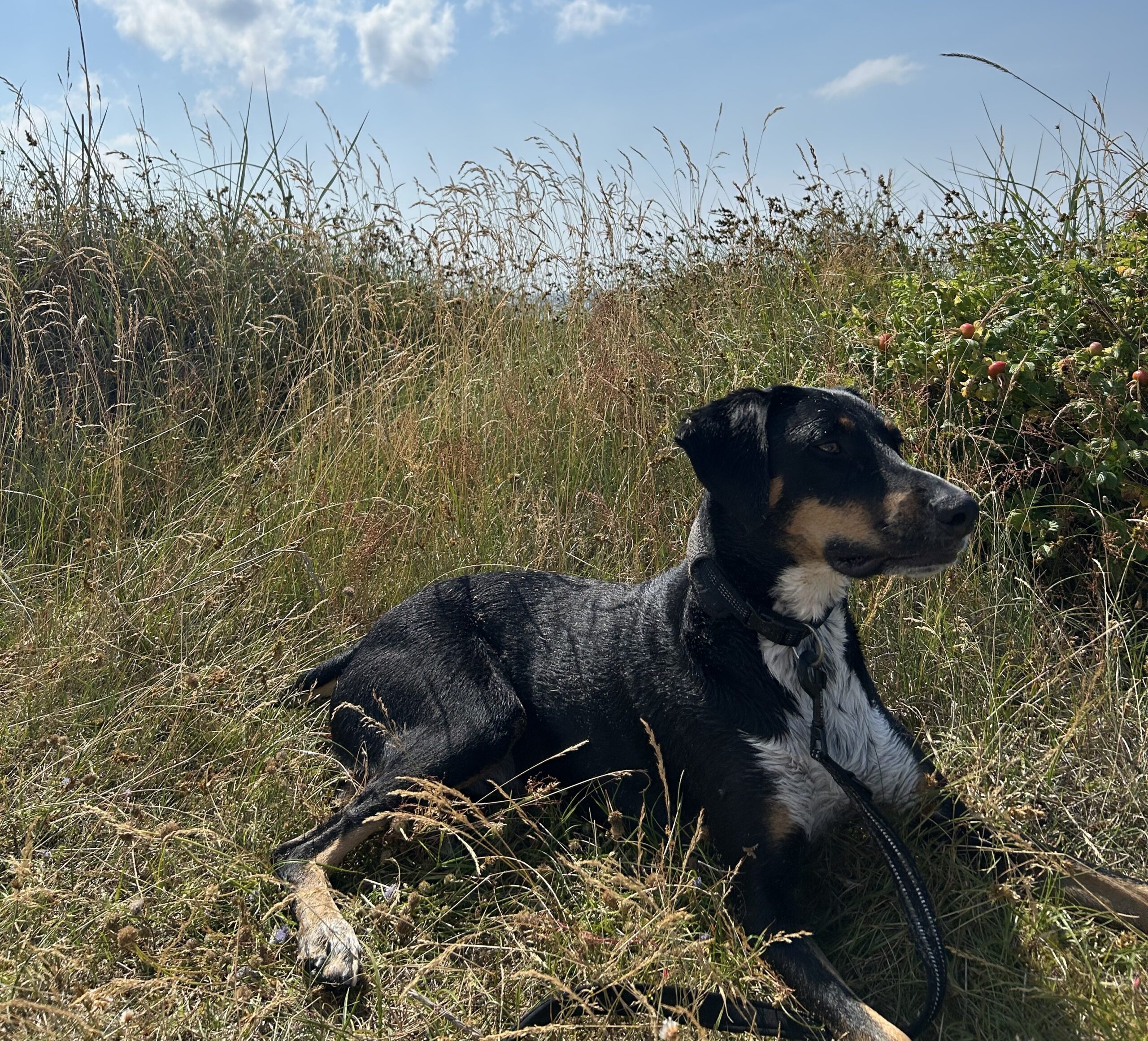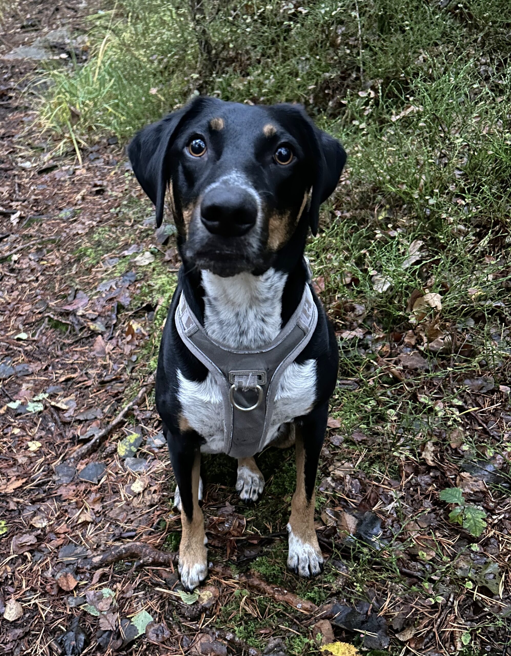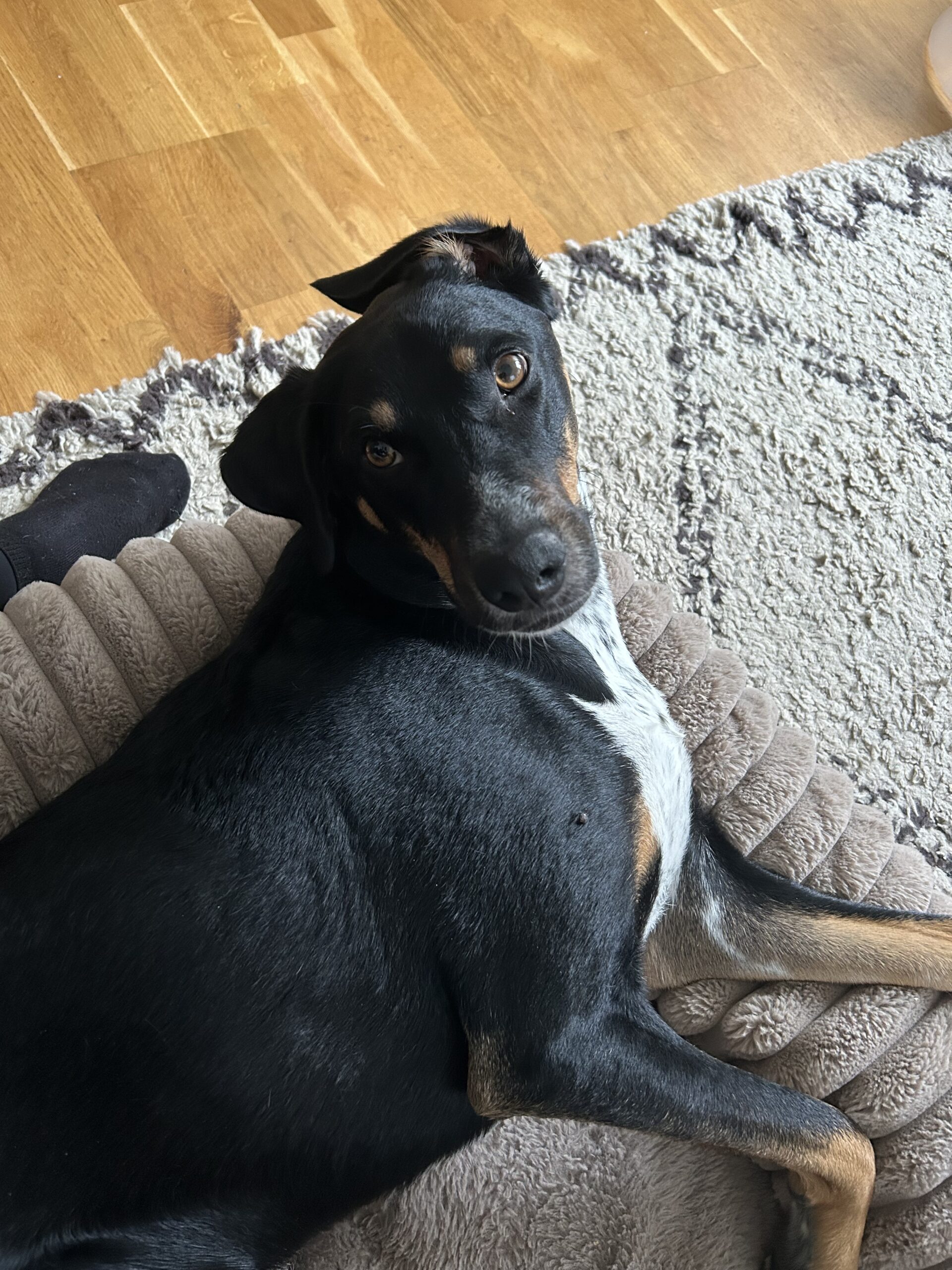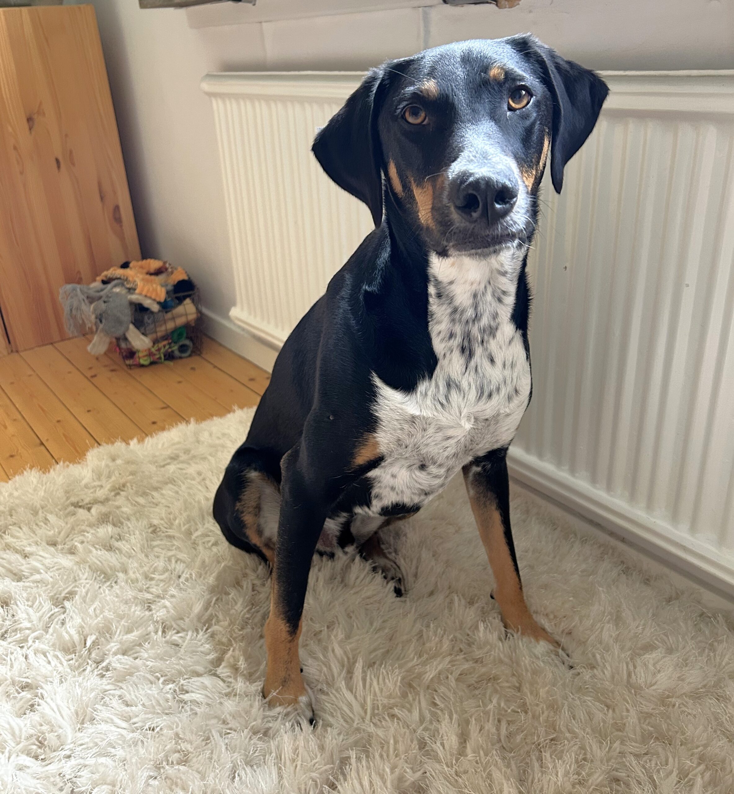 ”Alci är adopterad från Portugal och kom till mig 2023. Han är en social, rolig och smart hund som glatt lär sig nya trick. Alci har mycket energi och älskar att springa snabbt, busa och använda nosen. Efter rätt aktivering har han lätt för att komma till ro i en park eller på restaurang. Alci kan stressa upp sig vid kopplade hundmöten på nära håll, han är dock mycket van vid andra hundar och har fungerat fint med alla han umgåtts med. Alci är en utmaning att gå med i stadsmiljö då han blir överstimulerad av alla möten och intryck, han kan hoppa och nafsa när han blir frustrerad. Inomhus är han en myskille som slappnar av även vid besök. Hos mig är han trygg med att vara ensam några timmar, men på nya platser behöver han tid för att kunna att lämnas själv. Alci har jakt och vakt i sig och trivs inte i stan vilket gör att han söker ett nytt hem. Han är en underbar kompis som vill leva nära naturen.”