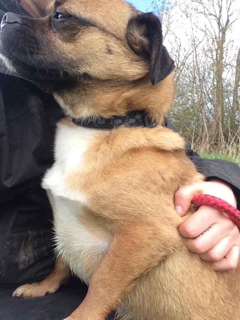 Captain älskar att komma ut på promenader och han fungerar bra ihop med andra hundar.