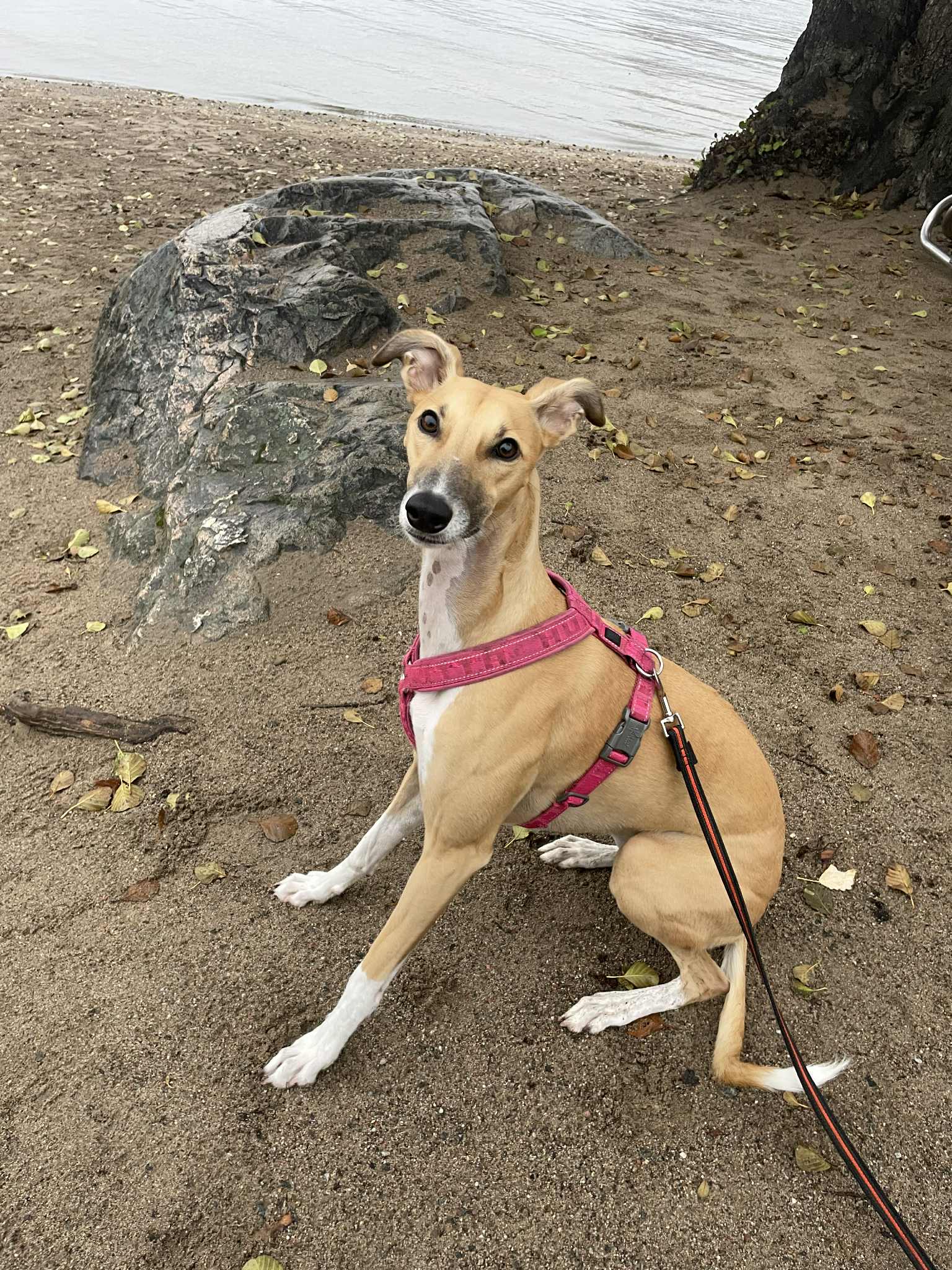 ”Chelsea är en nyfiken, pigg, mjuk och tillgiven tjej med humor och en ljuvlig personlighet. Hon njuter av att sträcka ut på säkra platser i sann vinthundsanda, med eller utan boll. Bäst är om det finns en annan snäll hund att springa med. Chelsea kan bli rädd om hon blir för mycket jagad, så det behöver vara lagom. Chelsea omplaceras på grund av att hon blir stressad av att bo mitt på söder i Stockholm. Framför allt är det drag i koppel och nära, och plötsliga, hundmöten som är svårt. Inomhus är hon en lugn och underbar kelgris som vill ligga nära, gärna under täcket. Hon är mycket social och positivt inställd till människor och generös med pussar. Hos oss kan Chelsea kan vara ensam några timmar.”