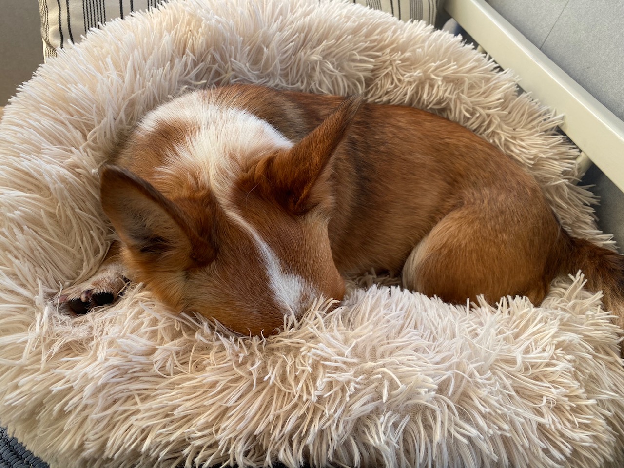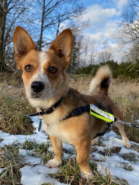 Corgi hittades ensam utan någon ägare som letade efter henne, och hamnade därför på ett rescue i Polen. Hon bor nu i Sverige och söker ett nytt hem då hennes adoptör har ångrat sig.