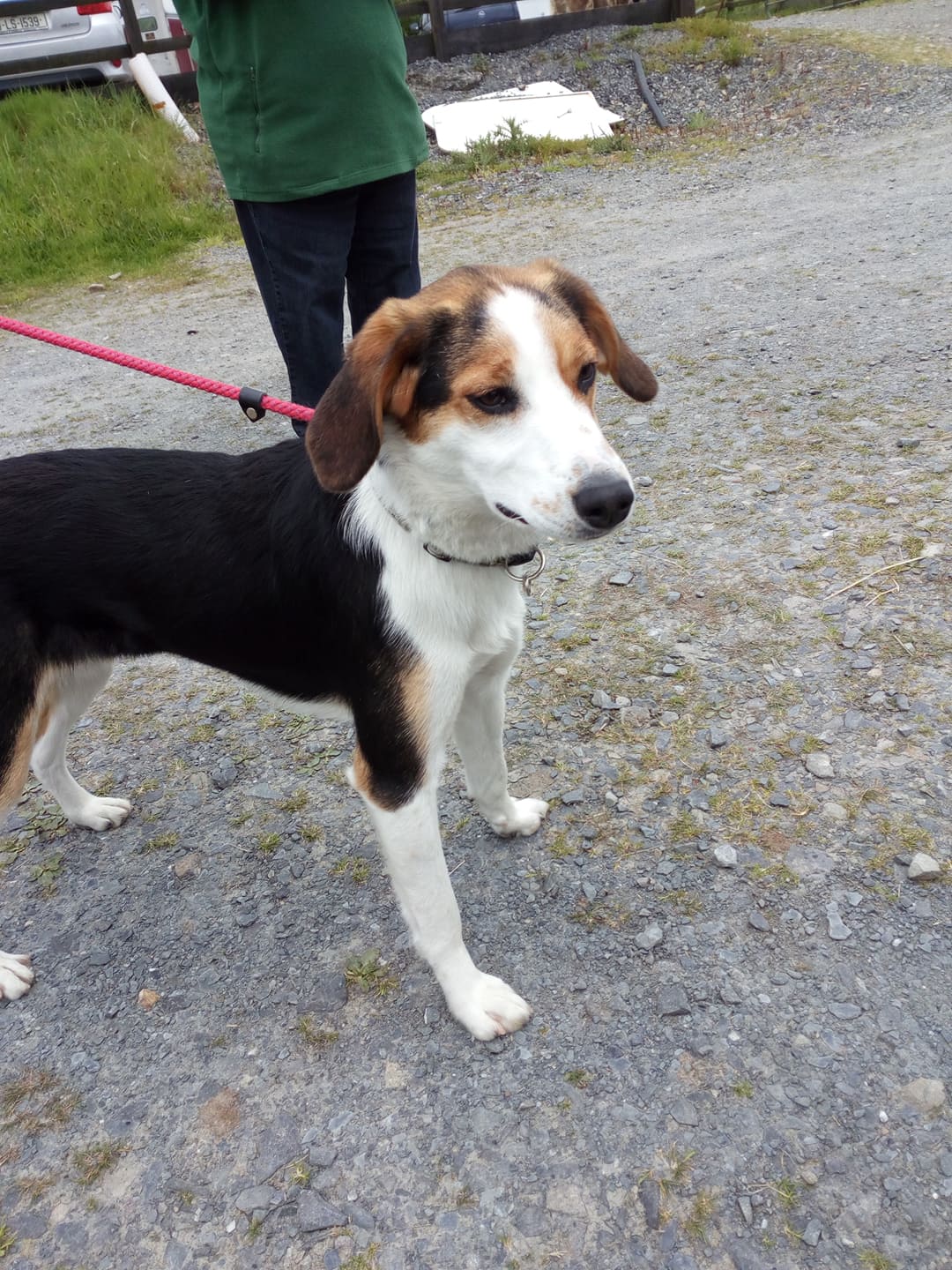 Debbie är en jättevacker ung tjej med mjuk päls som av okänd anledning blev övergiven till ett sk dog pound. Hon är en riktig kelgris och tycker om att vara nära både människor och andra hundar. Debbie kan bo med hundar, men vi vet inte om hon kan bo med katt. Hon besväras inte av trafik, men skulle trivas bäst i ett lugnare område med närhet till naturen. Hon är medel-aktiv och skulle passa bäst i ett aktivt hem som vill gå långa härliga promenader och även hitta på roliga aktiviteter. Man tror att hon är en border collieblandning och färgen gör att man gissar på beagle också, men man vet inte.