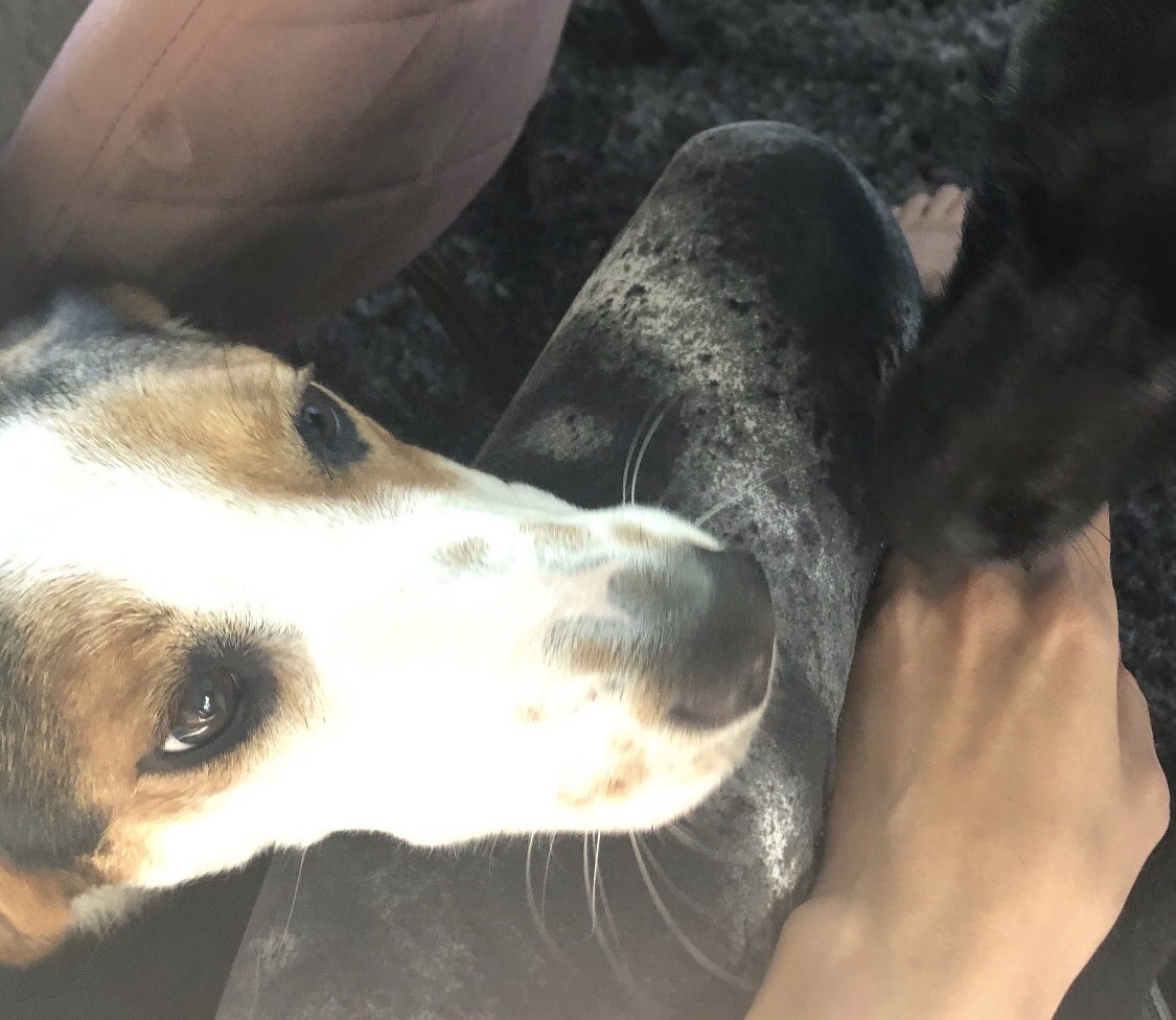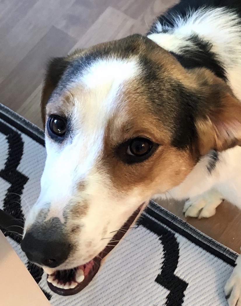”Den Debbie vi lärt känna nu är supermysig och väldigt tillgiven. Hon älskar barn, och ligger ner och väntar så fint på att få hälsa. Sedan kan hon bli lite hoppig och vill pussas 🙂 Det älskar hon.