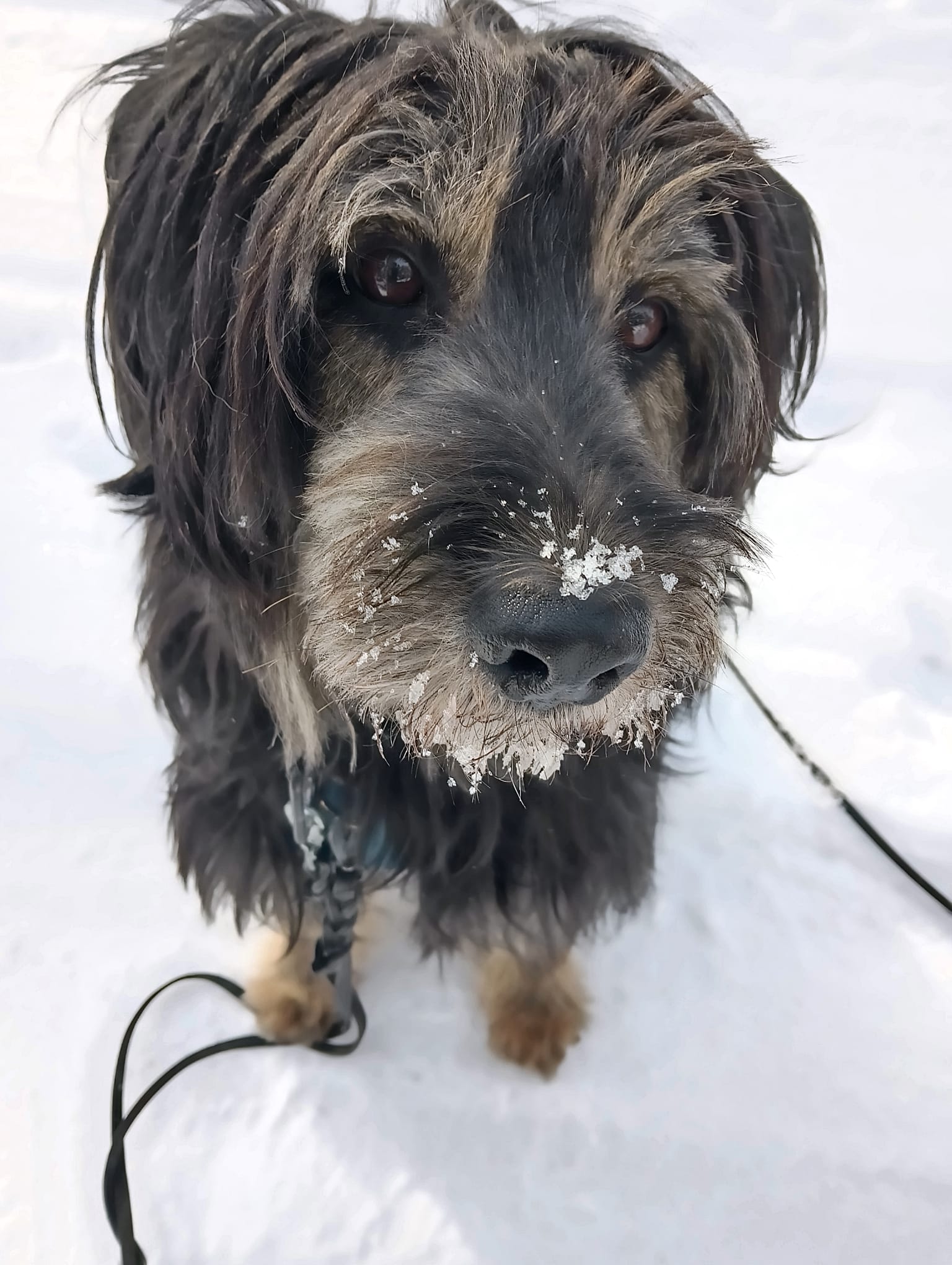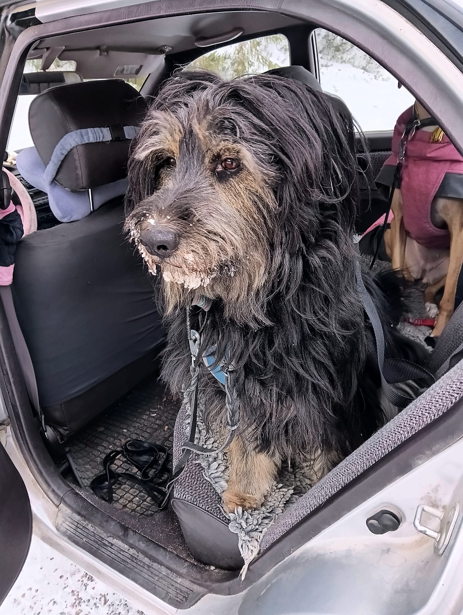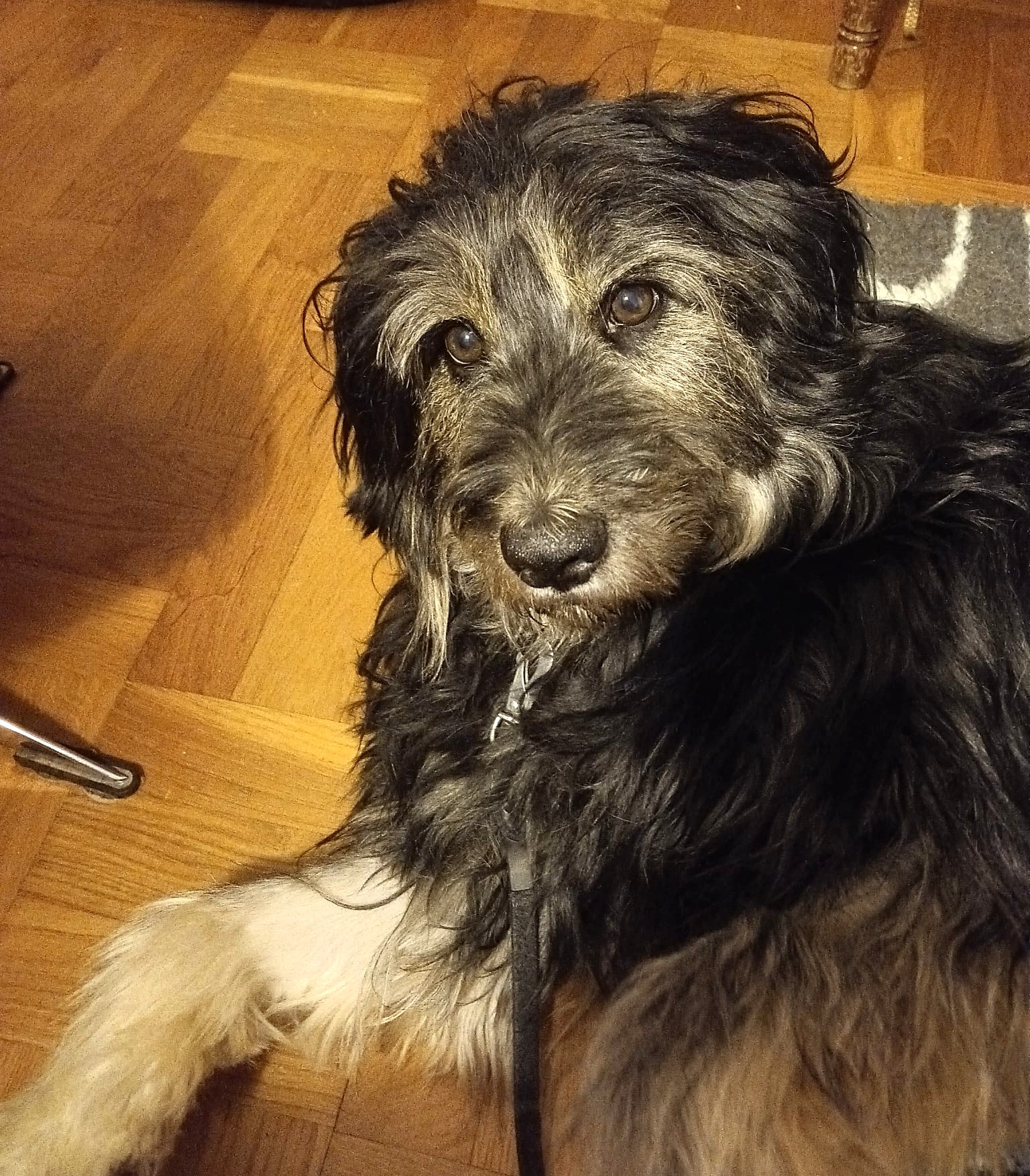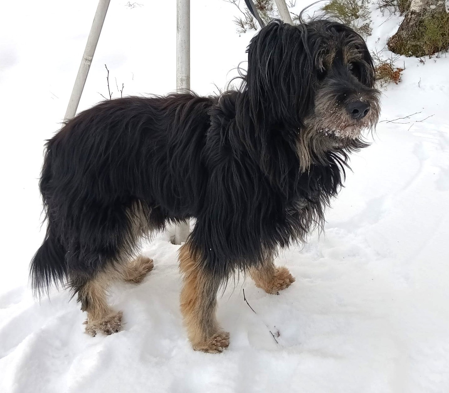 Dylan, som tidigare kallades Sonat, hittades övergiven med ett okänt förflutet och togs om hand av ett rescue i Polen. Där beskrevs han som en trygg hund med ett stort hjärta som njöt av klappar och uppmärksamhet. Han kom till sin familj i Sverige i november 2025, men söker nu ett nytt hem.