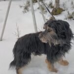 ”Min tik och Dylan har blivit väldigt bra vänner och leker fint tillsammans. Tyvärr fungerar det inte med katten, men så länge de hålls separerade är han lugn och mycket kärvänlig i hemmet. Hos mig kan han lämnas ensam en stund utan problem. Dylan har höftledsdysplasi och är känslig i bakdelen, vilket man behöver ta hänsyn till. Han får smärtlindrande medicin och kan enligt veterinär leva ett gott liv med lagom motion.