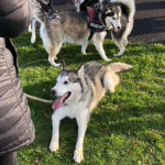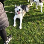 Jax går fint i koppel och tycker så klart om att få komma ut på promenad. Som den huskyblandning han är har han en del energi att göra av med och behöver många och långa härliga promenader, jogging- eller cykelturer. Han har inga problem med stadstrafik, men vill gärna ha nära ut i skogen så ett lugnare område skulle passa honom bäst.