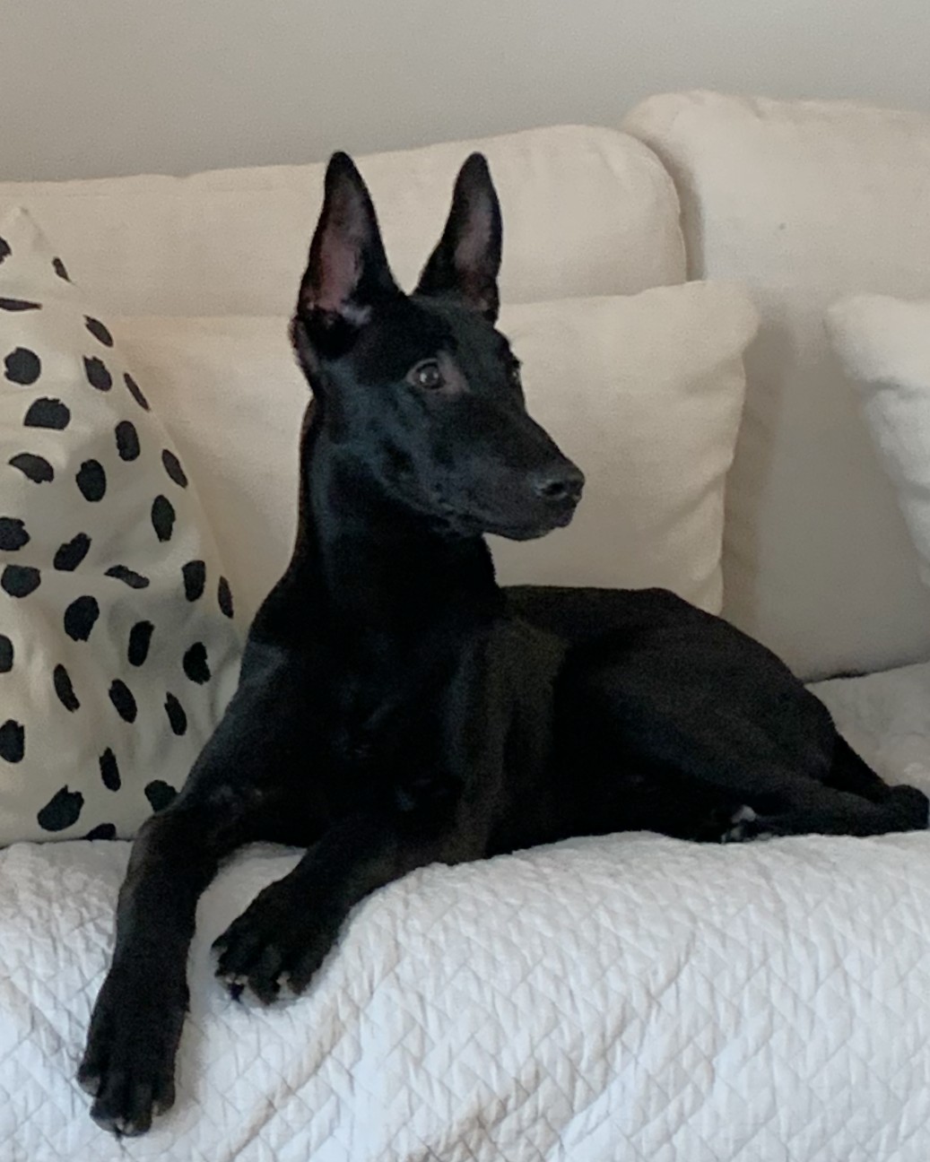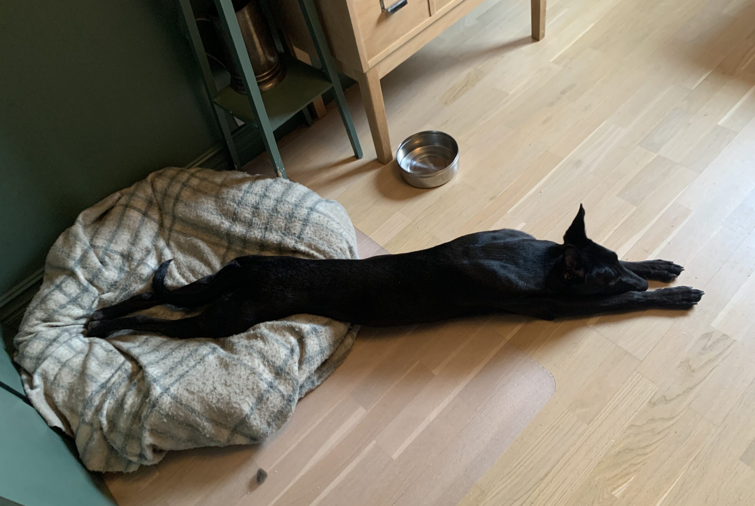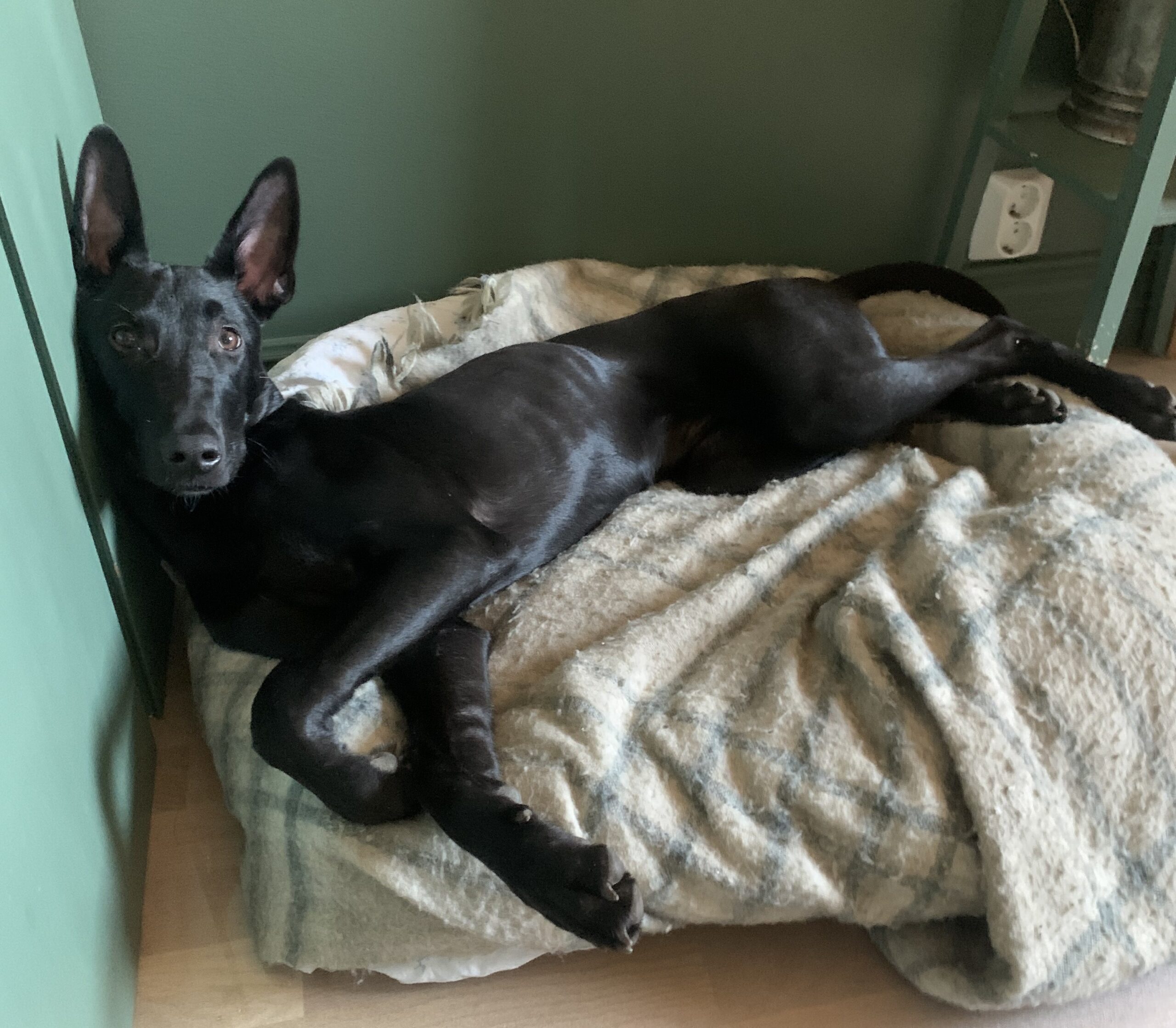 ”Lily är en smart, lättlärd, gosig, kavat och charmig unghund. Hon får sina tokiga zoomies någon gång om dagen och kastar då upp sitt gosedjur i luften för att sedan fånga det igen i språnget. När inget särskilt händer har hon dock blivit duktig på att hitta ro och vila.