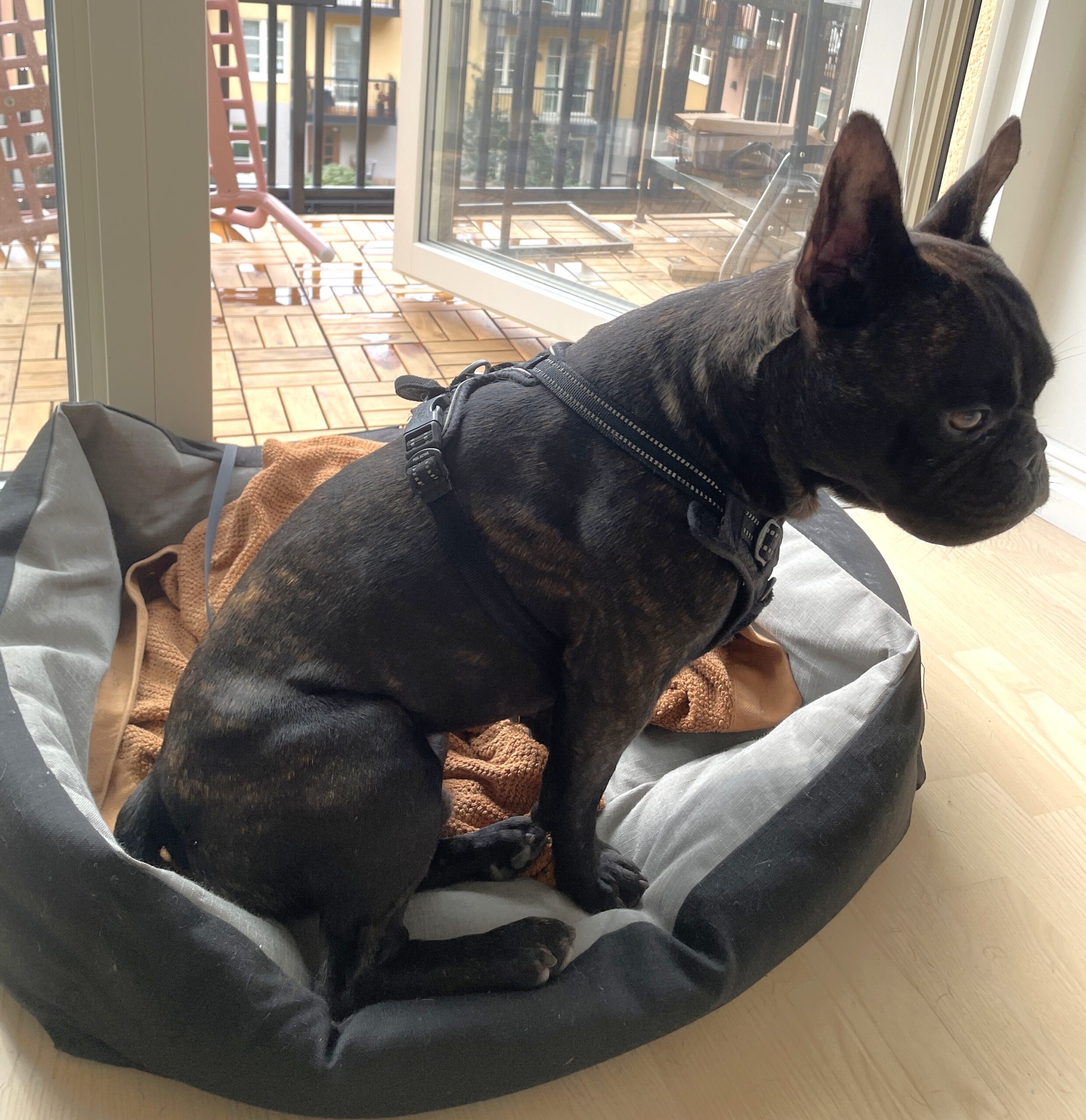 Louis omplaceras på grund av tidsbrist. Han är en helt underbar kompis som förtjänar mer aktivering och sällskap än vad jag kan ge honom.”