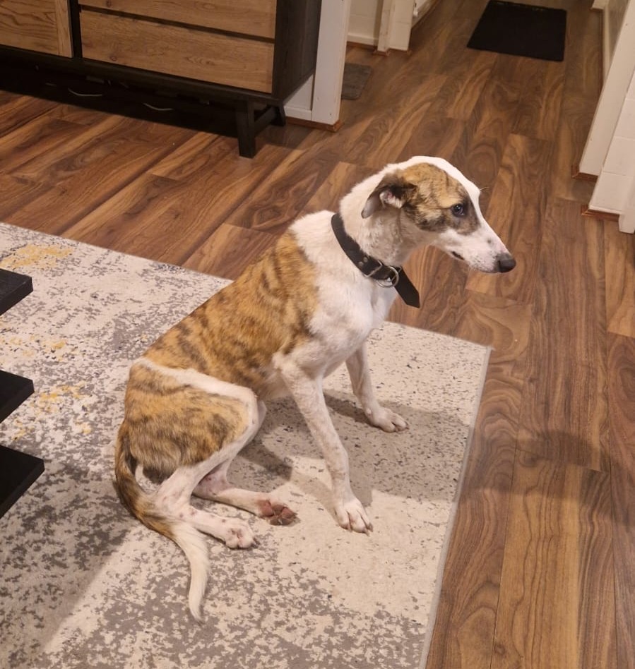Max är en ung lurcher som ser fram emot sin andra chans. Han tycker om människor och hundar i samma storlek som han själv, men däremot uppskattar han inte katter eller småhundar som skäller på honom. Han vill få sträcka på benen och sedan drapera sig över närmaste mjuka soffa. Han går bra i koppel med jourhemmet.