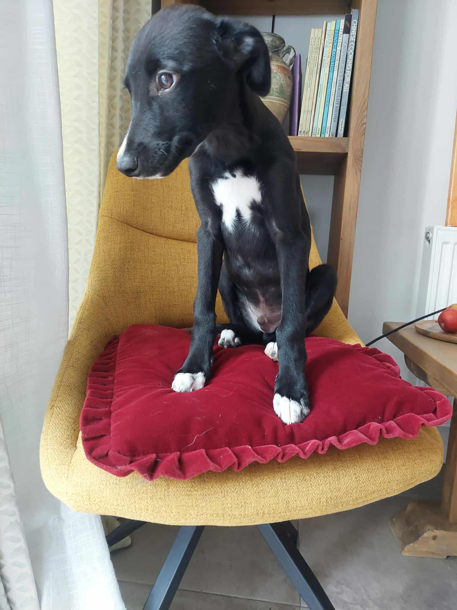 Milo är en kärleksfull och social, men försiktig, liten kille som gärna vill krypa tätt intill och leka med jourhemmets andra hundar. Där finns barn i tonåren också. Han längtar efter ett kärleksfullt hem där han är en självklar familjemedlem som aldrig mer behöver fundera på hur elaka människor också kan vara. Eftersom han är så ung förväntas han kunna lära sig bo med katt och i mer centrala miljöer. All grundläggande utbildning ligger framför honom, vilket inkluderar fortsatt socialisering, vardagslydnad och miljöträning.