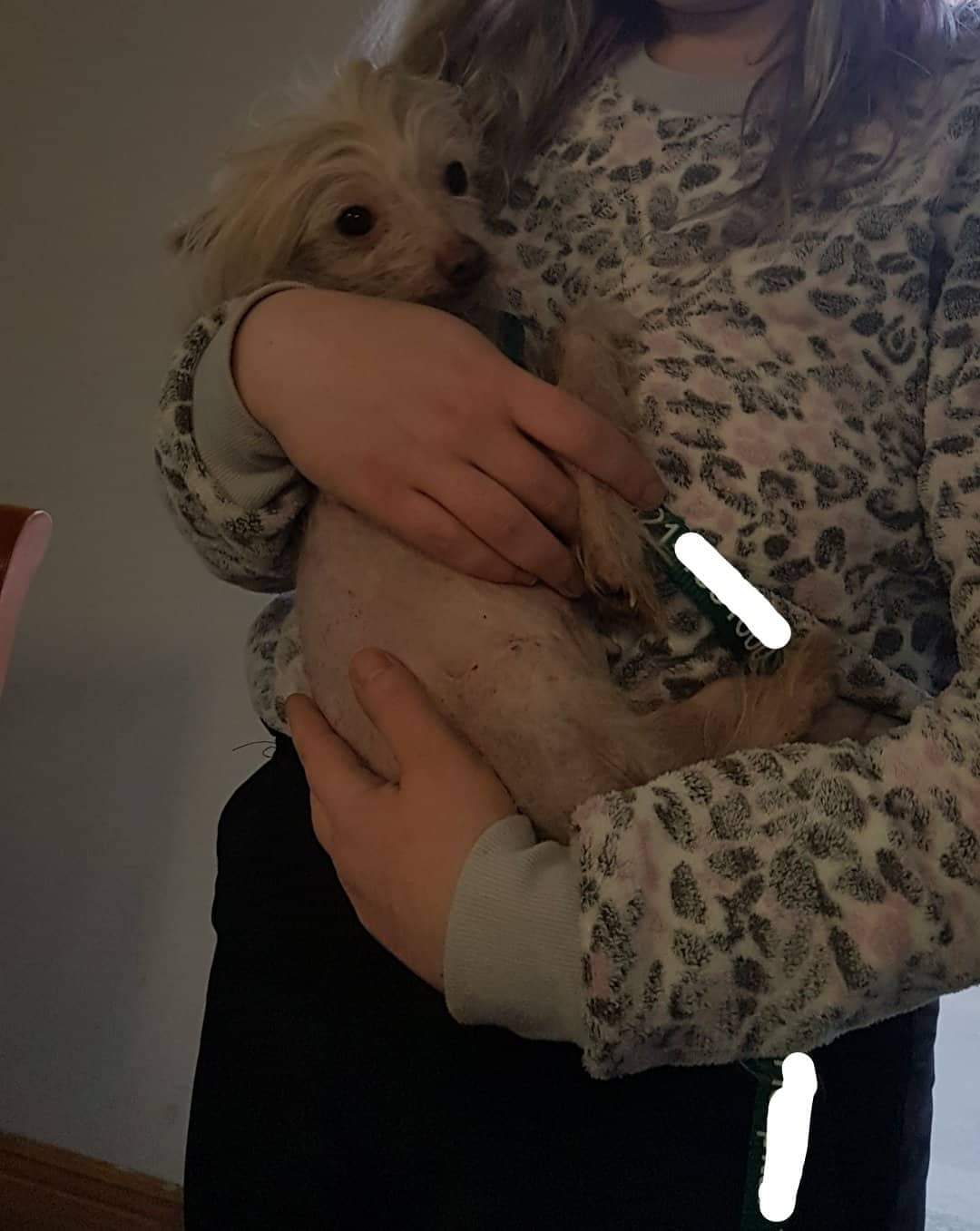 Lilla Pammy hittades övergiven på gatan och ingen letade henne. Vi tror att hon har övergivits efter att inte längre kunna användas för avel.