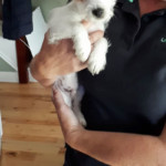 Det här är Peanut! En riktig liten pärla. Trots att han endast är 3,5 månader kan han redan gå till sin hundkorg på kommando och är så gott som rumsren. Peanut älskar också att gå på promenad i koppel. Han har introducerats för trafik och det har gått bra så han kan bo såväl i staden som på landet.