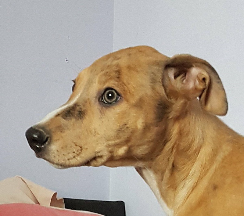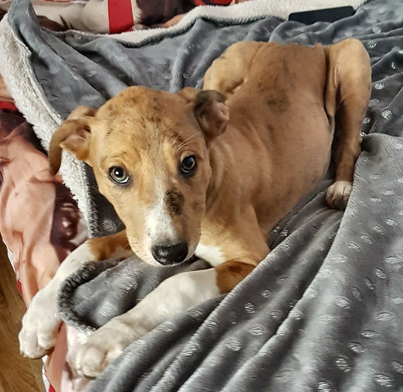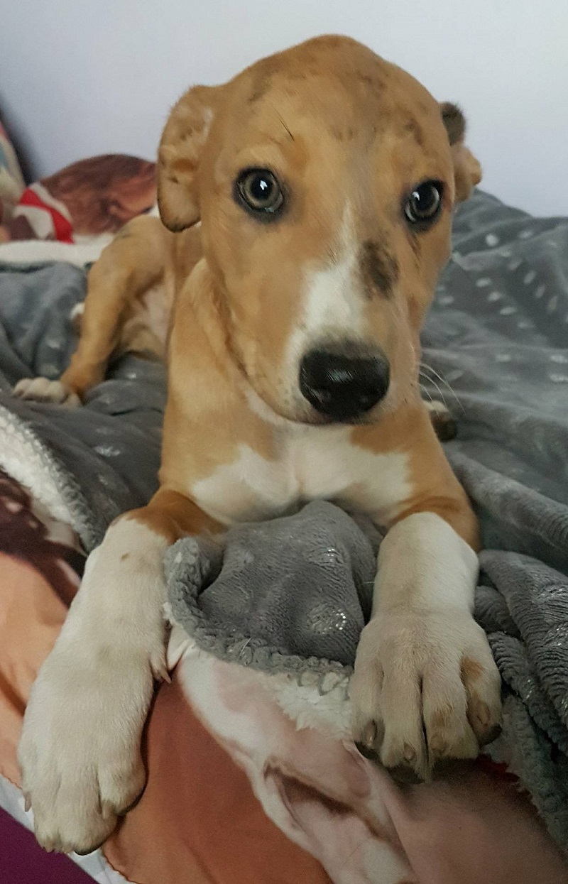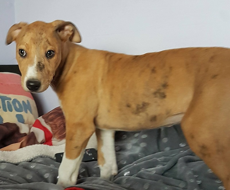 Faith som är mamma till 12 trevliga busiga valpar plockades ut från ett av pounden högdräktig. Det dröjde inte många dagar innan valparna hade sett dagens ljus. Nu börjar det bli dag för dem alla att hitta sina alldeles egna hem. Det är 4 hanar och 8 tikar. Vi tror att mamman är en blandning av collie och vinthund och eftersom valparna är stora och har färger och teckningar som påminner om Grand danois så tror vi att pappa till valparna kan vara en sådan. Alla valparna har fått vuxit upp med sin mamma och hon tog väl hand om dem. Då de var 12 till antalet så räckte inte hennes mat till utan de har tidigt fått äta tillägg.