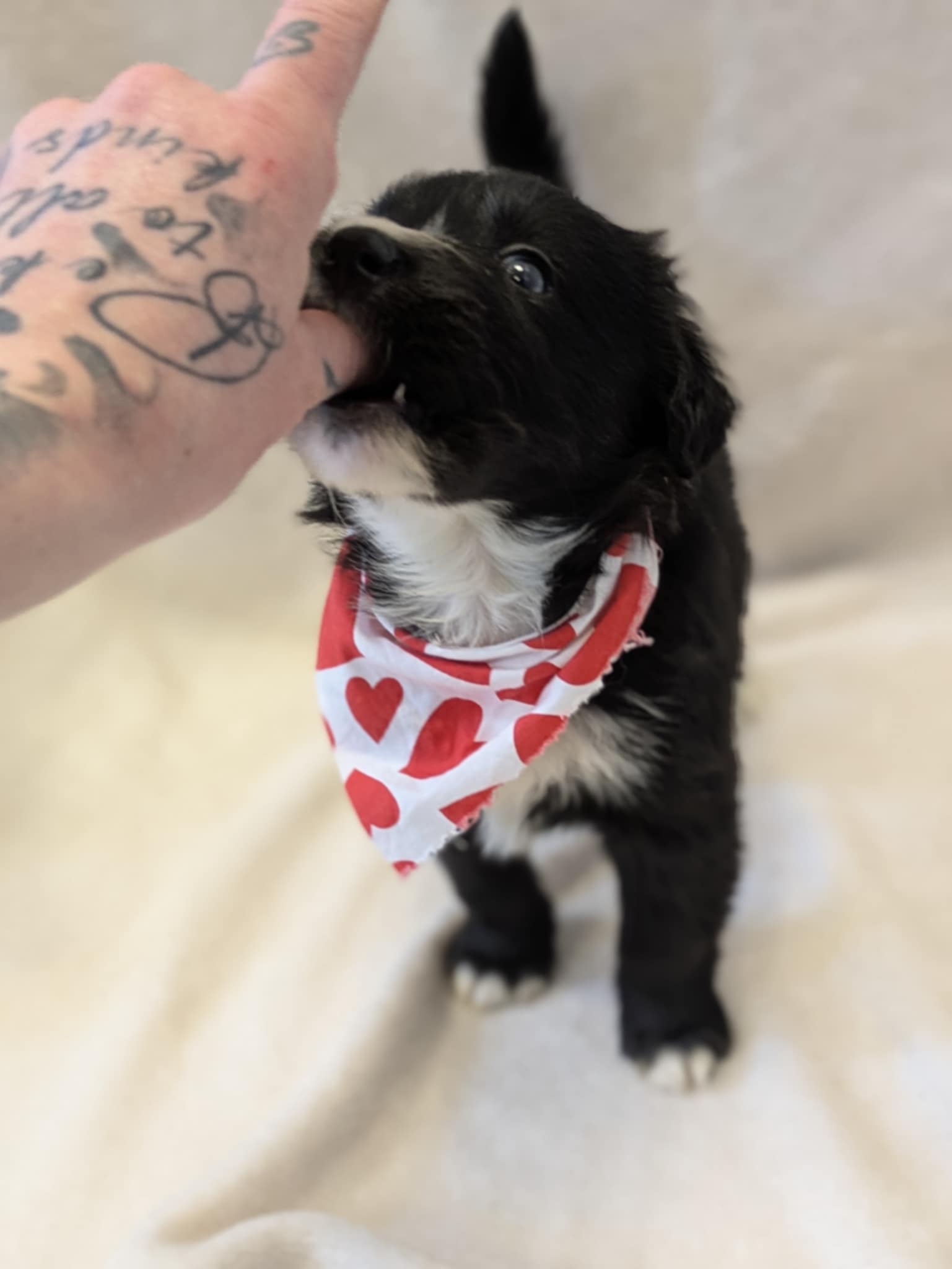 Popcorn är en stark tjej som älskar att leka och som lägger all sin energi på att busa omkring. Hon är väldigt social och hälsar glatt på människor, hundar, katter och även getter. Hon är en riktig vattendyrkare och leker gärna med allt vatten hon kan hitta — även sin vattenskål. All grundläggande utbildning ligger framför henne, vilket inkluderar vardagslydnad, miljöträning och fortsatt socialisering. Vi söker ett hem till Popcorn där beslutet att skaffa en valp är väl övervägt och som kan erbjuda henne fysisk och mental stimulans i sin vardag.