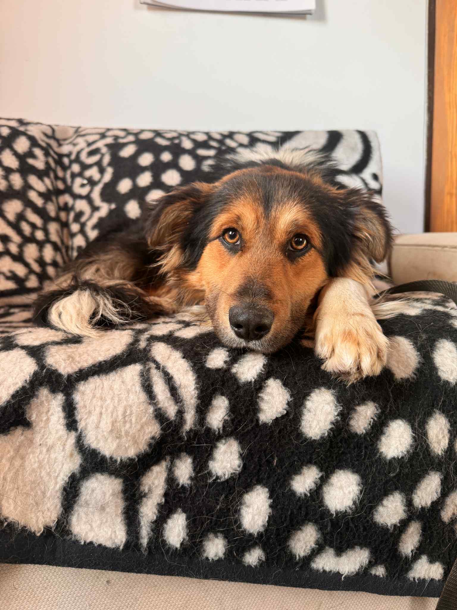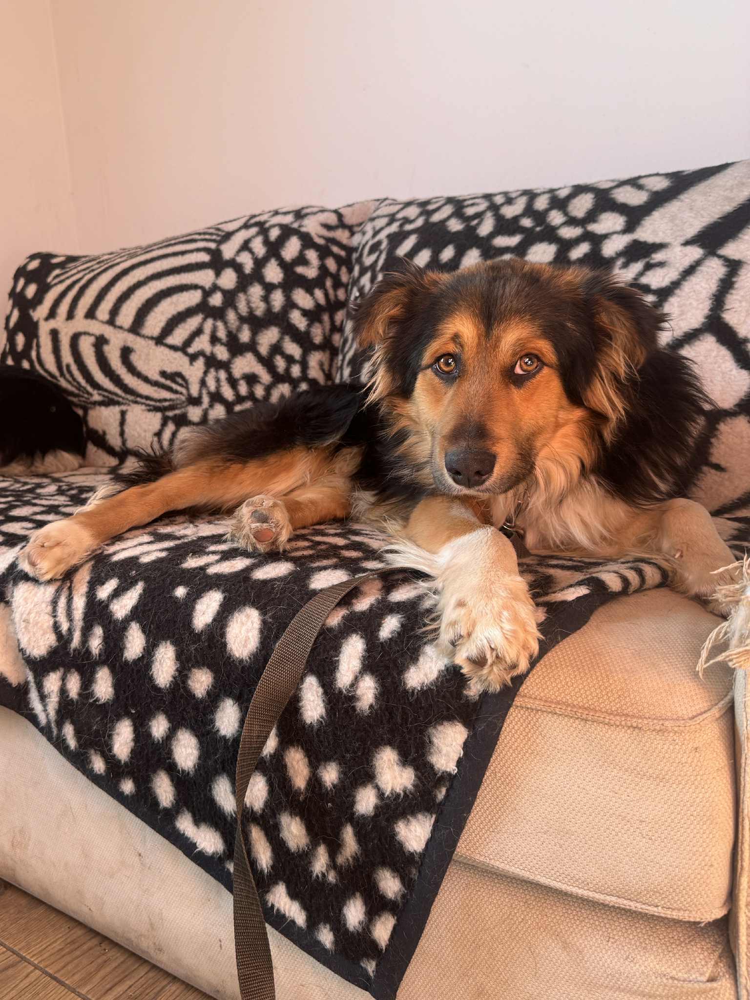 River är en försiktig själ som behöver tid för att lita på någon ny. Vi misstänker att han inte alltid varit väl behandlad av människor. Han är duktig vid all hantering. Han är en lugn kille som gärna observerar sin omgivning innan han ger sig in i lite lek med en snäll hundvän.
