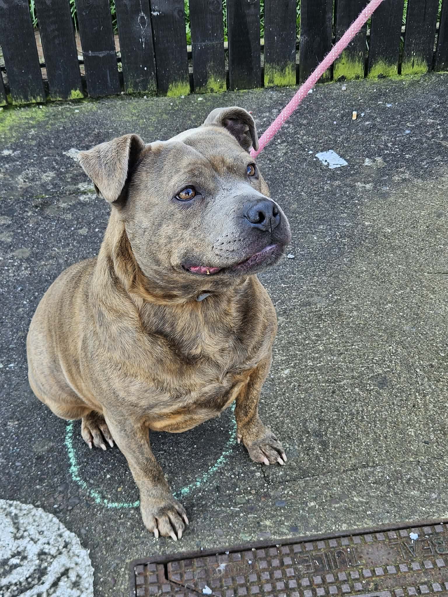 Scarlett är en glad och vänlig hund som tycker om människor och vill vara i deras sällskap. Hon är i dagsläget överviktig och behöver hjälp med sin fortsatta viktnedgång, men hon är full av liv och längtar efter en nystart.