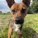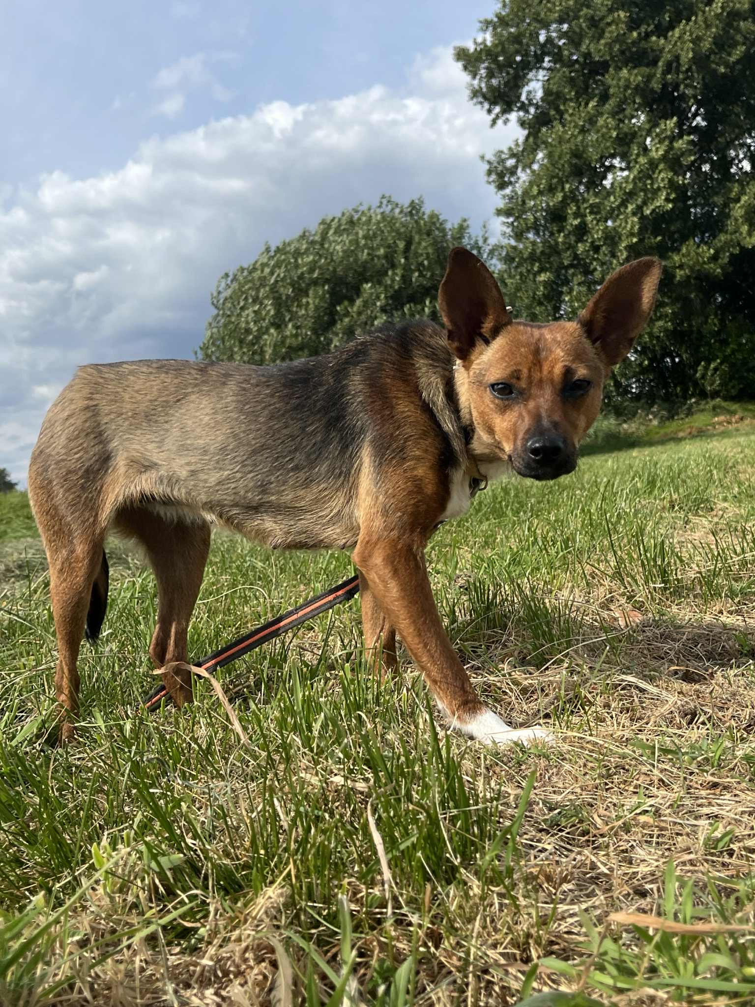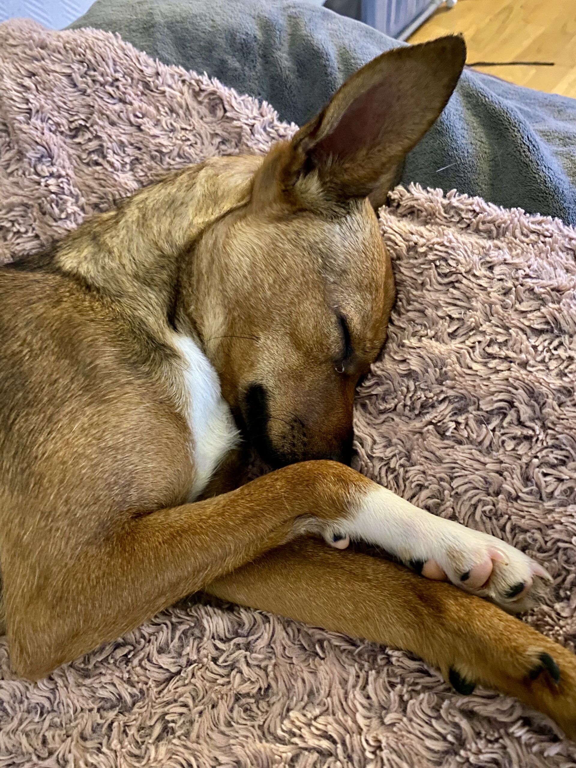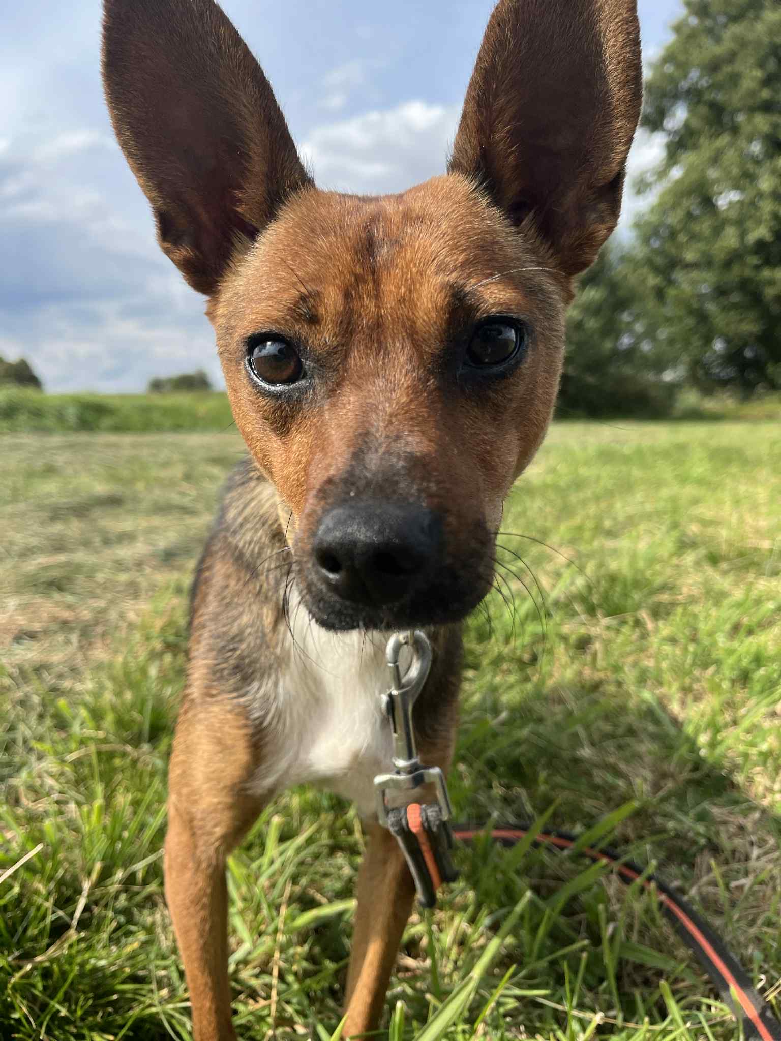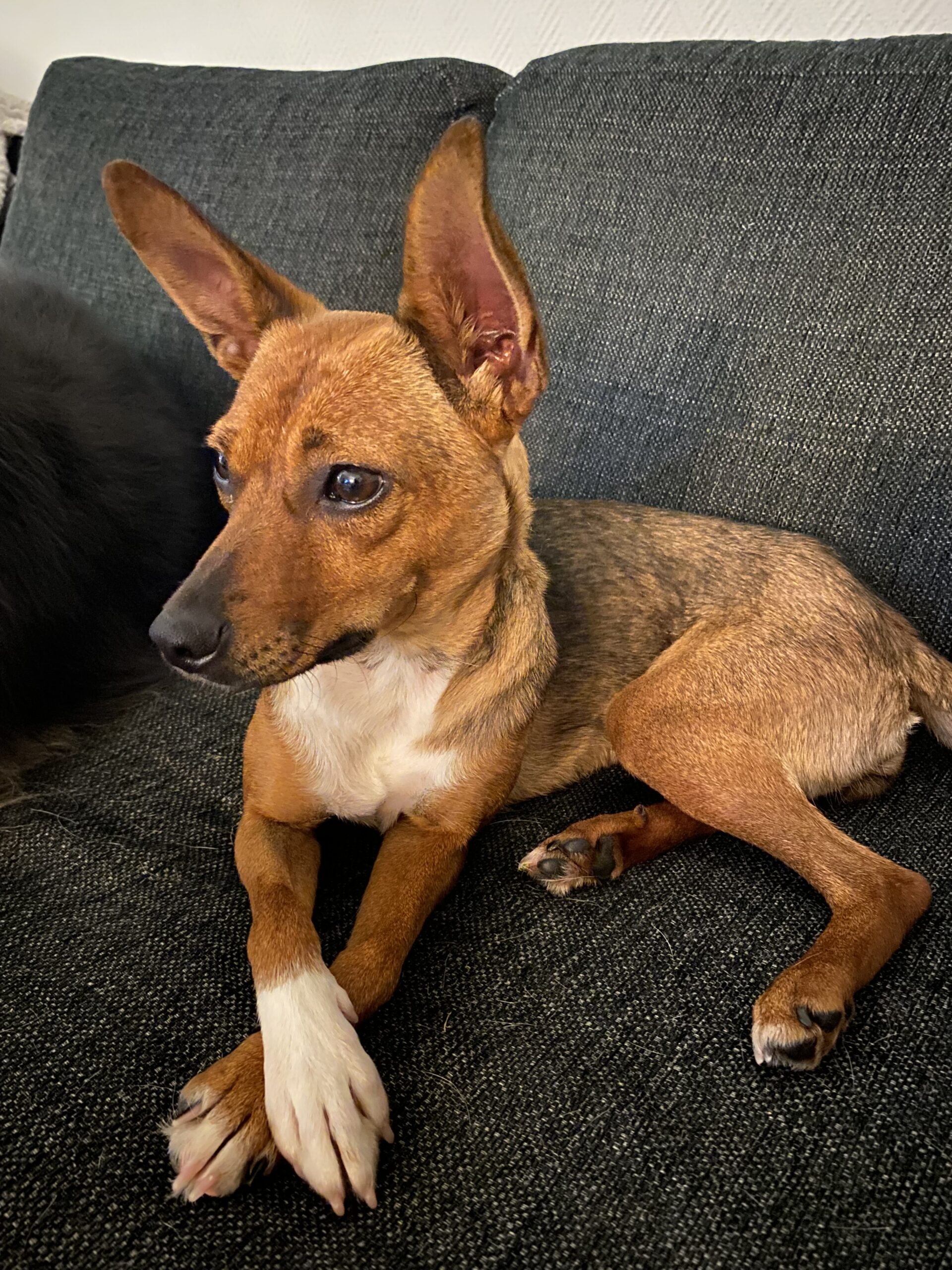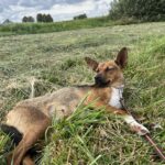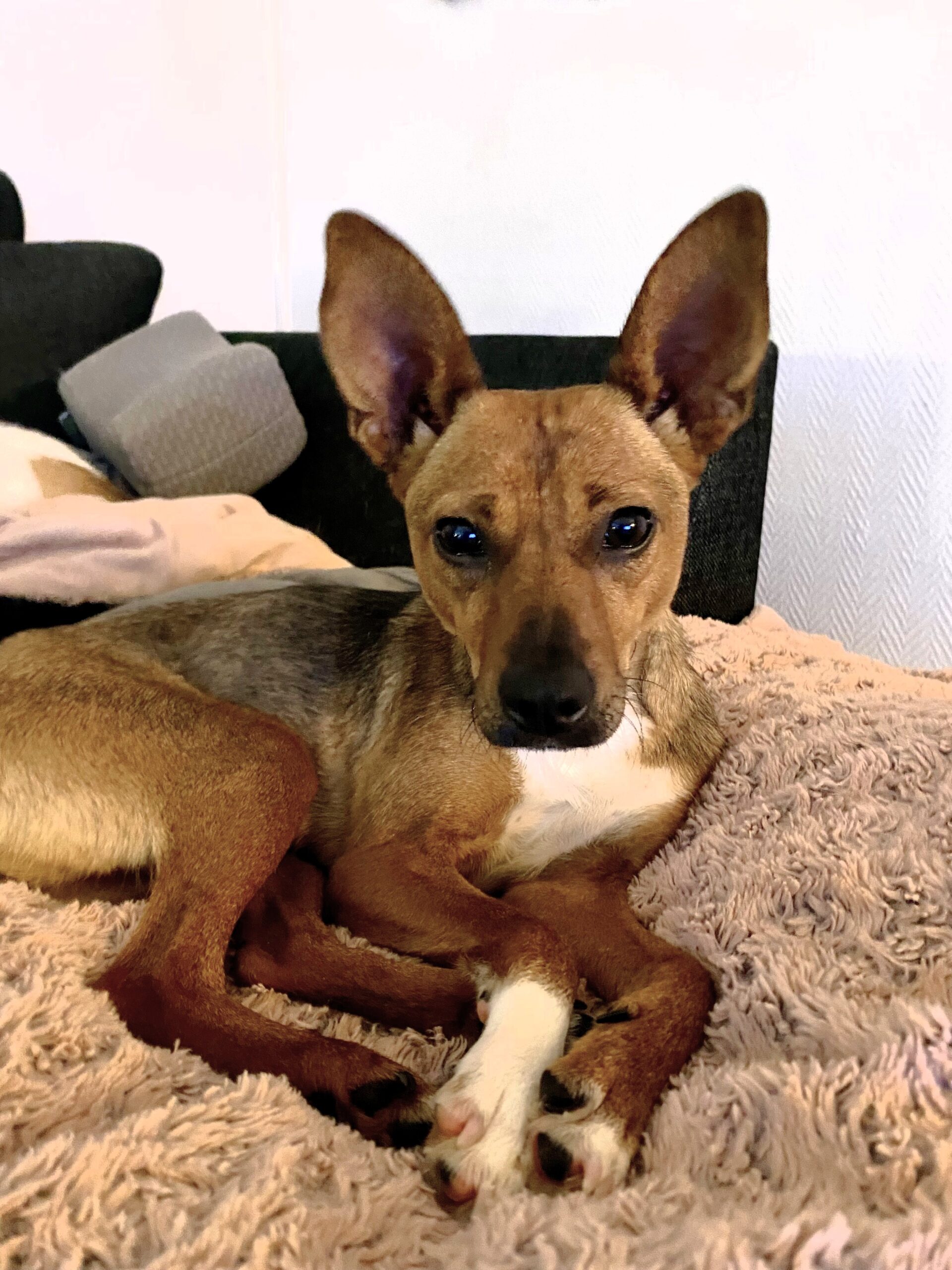 Sepia hittades övergiven och togs till ett rescue i Polen. Nu bor hon i ett jourhem i Sverige.