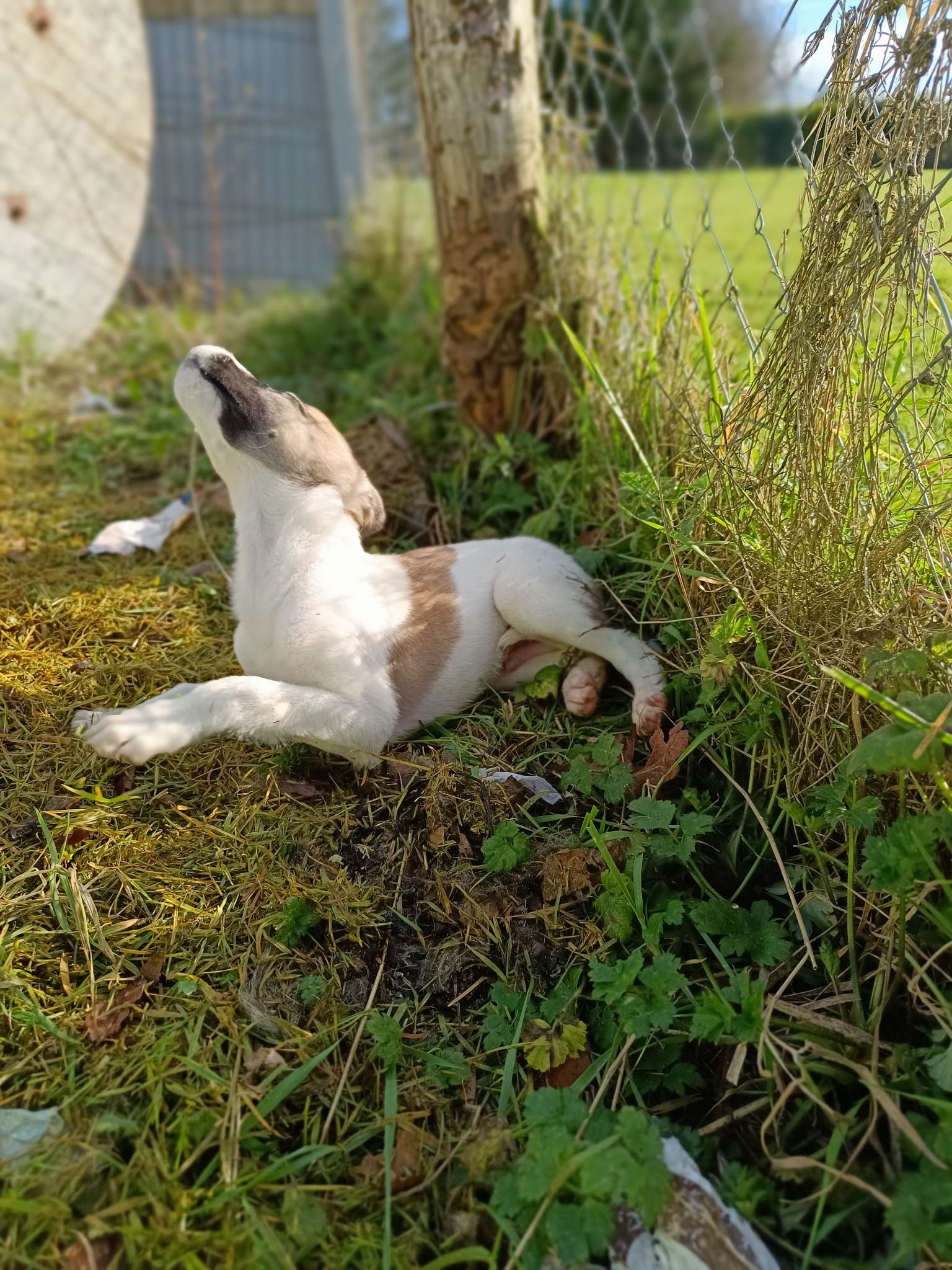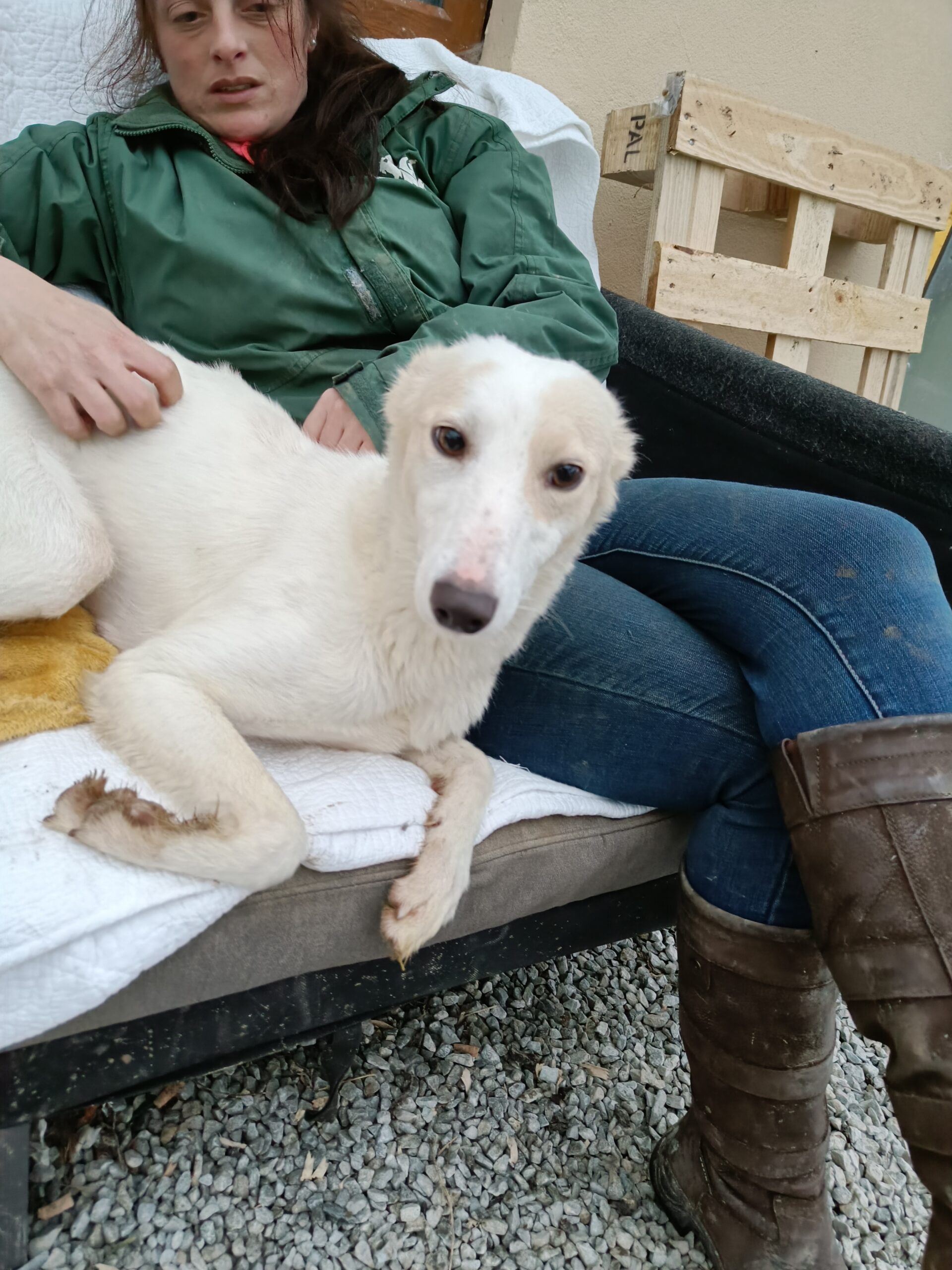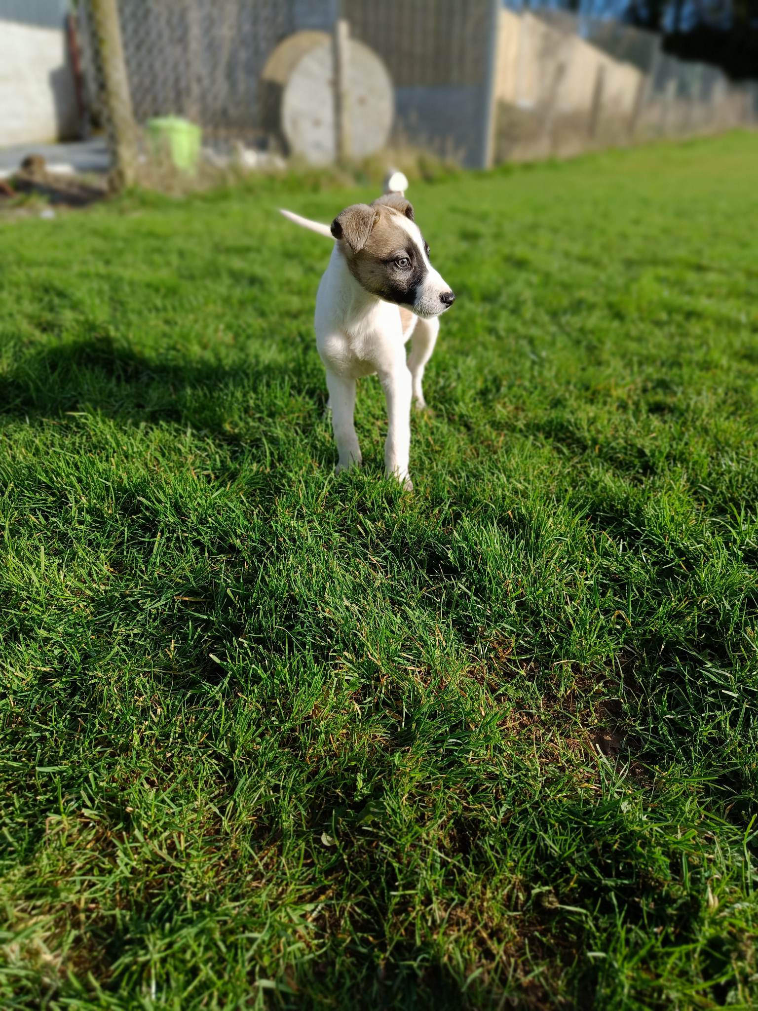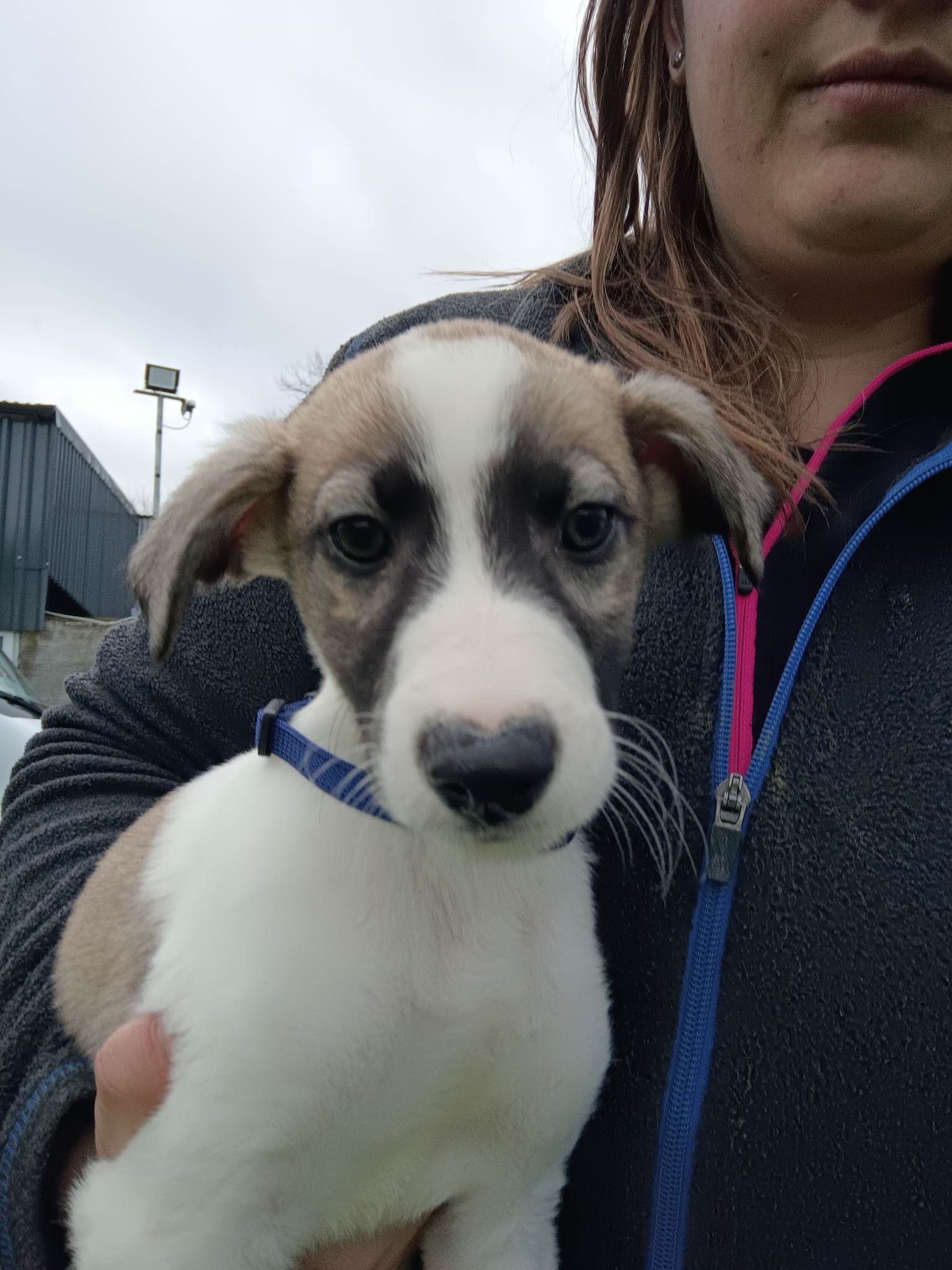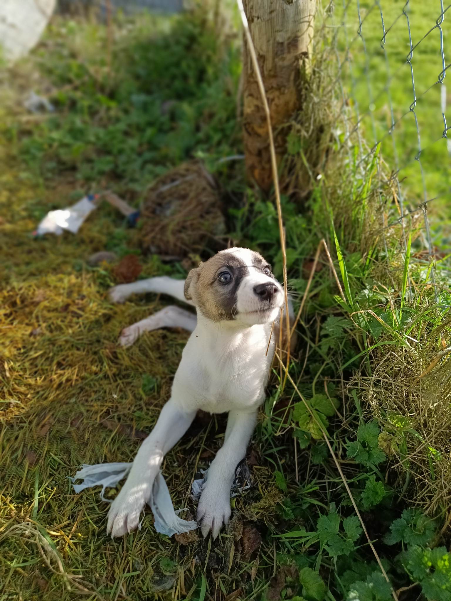 Det här är Simba. Hans mamma var fullt dräktig när hon hittades helt övergiven och alla valparna föddes strax därefter på det irländska rescue där de idag befinner sig. Simba är en av 8 valpar i kullen. (Bild två nedan är på valparnas mamma).