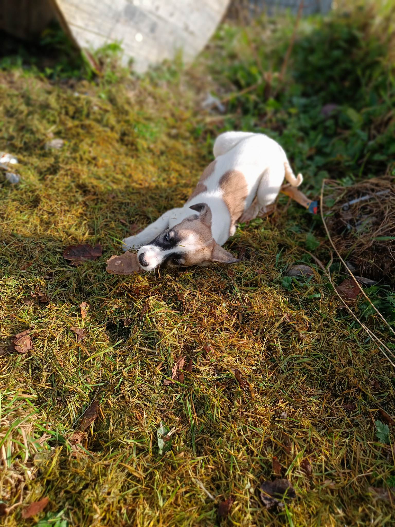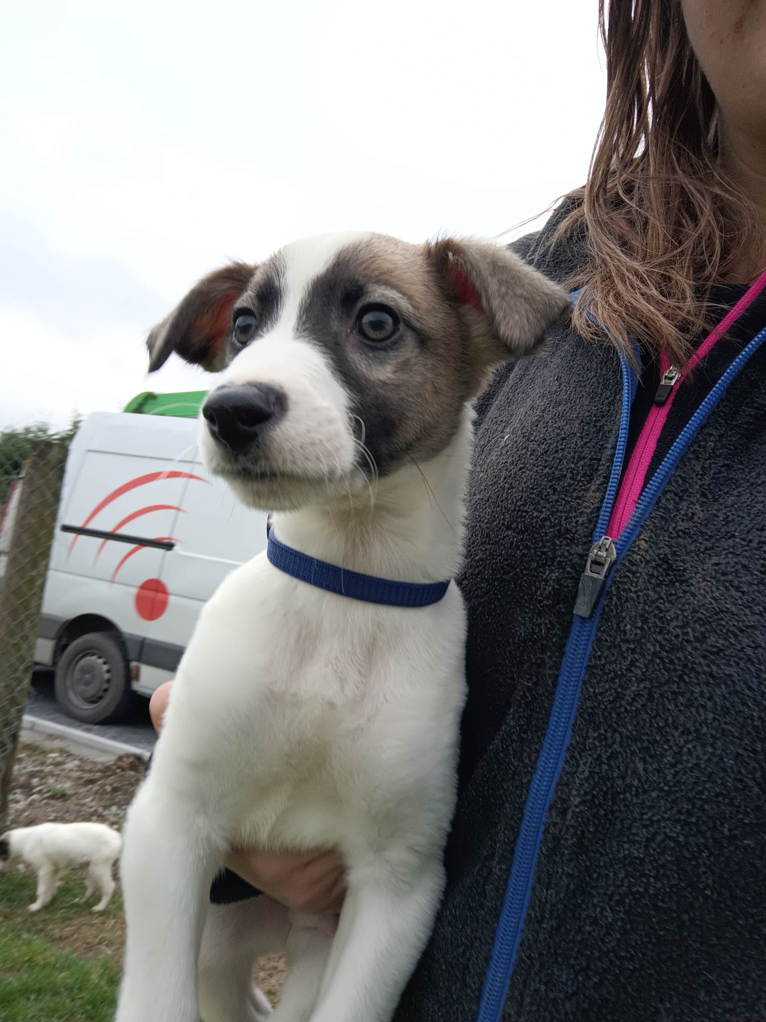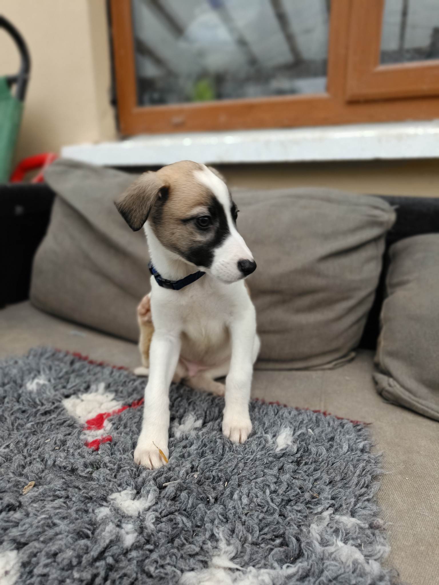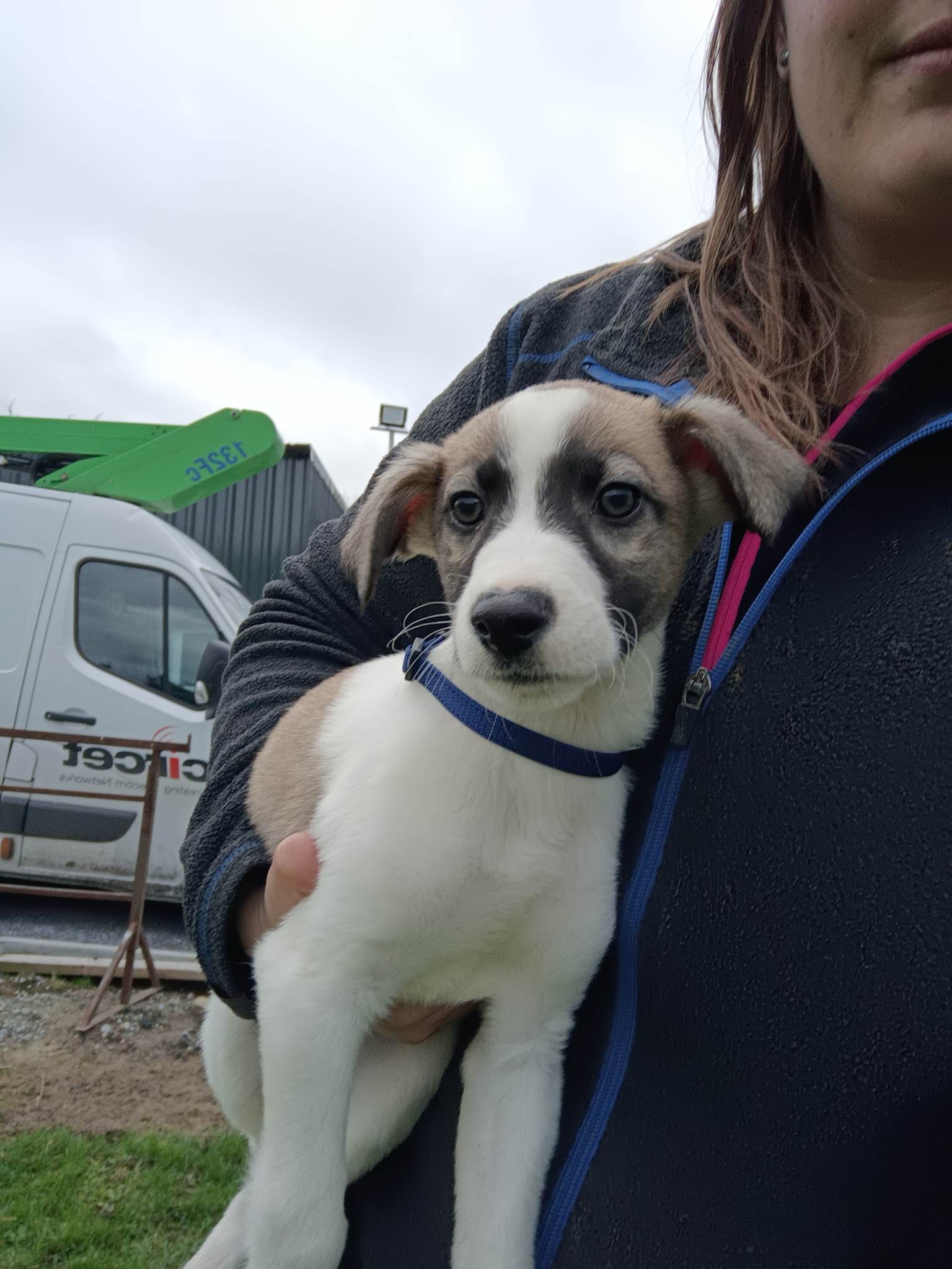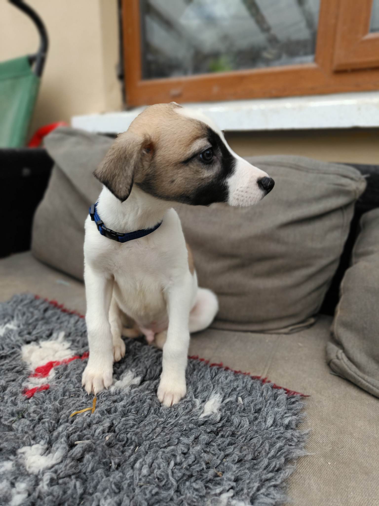 Det här är Simba. Hans mamma var fullt dräktig när hon hittades helt övergiven och alla valparna föddes strax därefter på det irländska rescue där de idag befinner sig. Simba är en av 8 valpar i kullen. (Bild två nedan är på valparnas mamma).