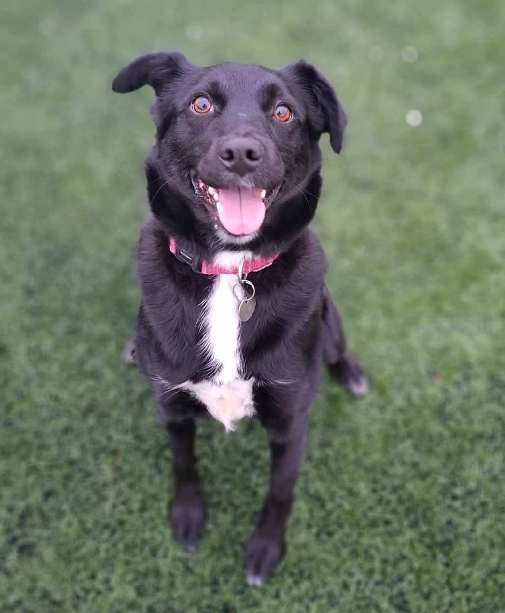 Sindy är en näpen liten tjej som tycker mycket om att gosa. Det viktigaste att göra när någon kommer in i hennes box är att klättra upp i knät på dem. Hon har kommit överens med de andra hundarna, men kan vara lite osäker först. Boll står högt i kurs tillsammans med promenaderna.