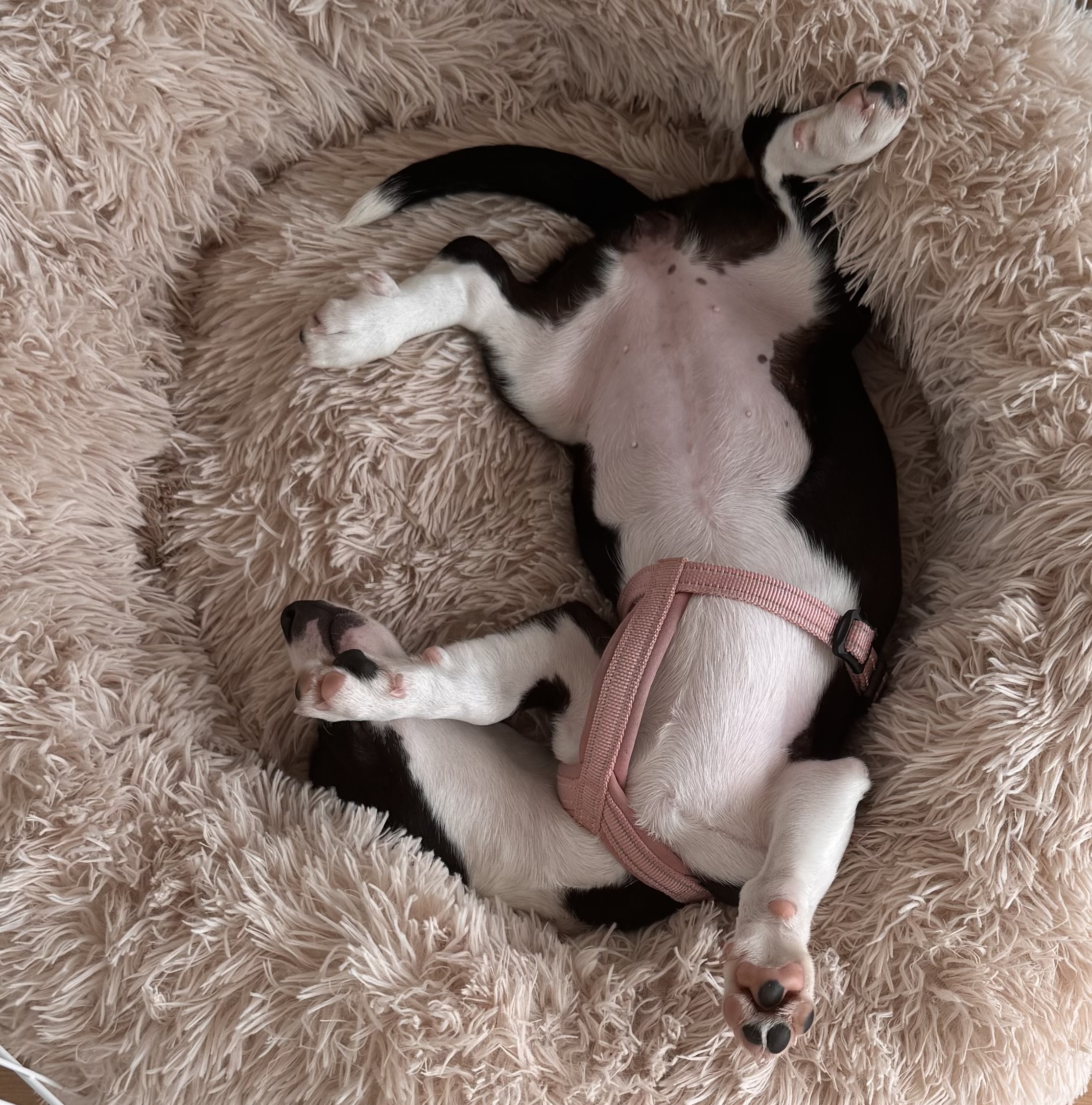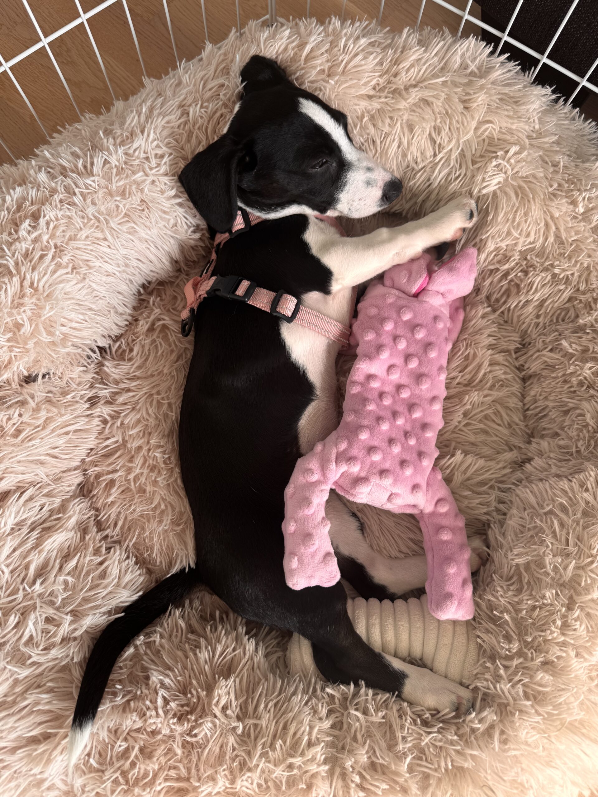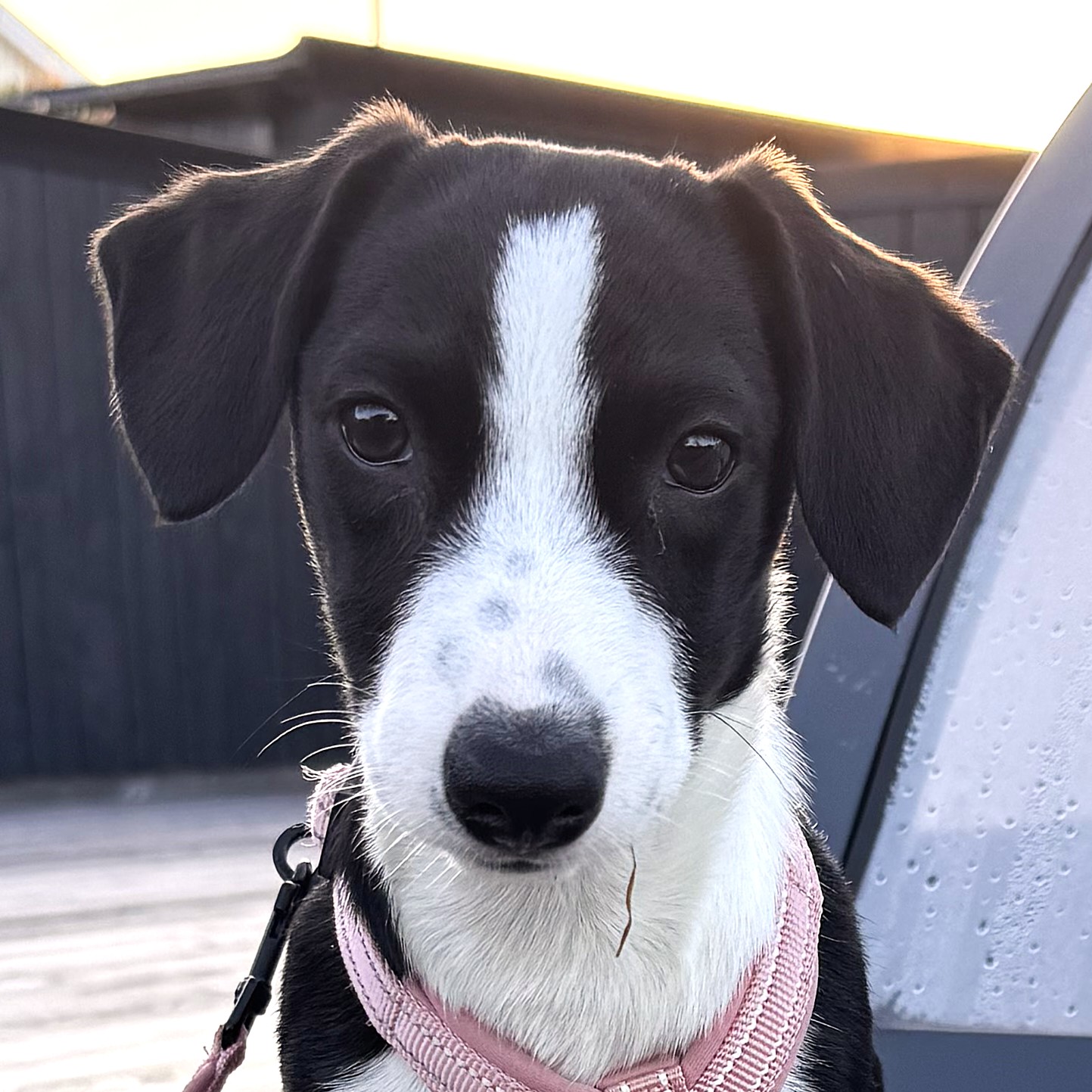 Sofia och hennes syskon var övergivna valpar som på så vis hamnade på ett rescue på Irland. Hon befinner sig nu i sin familj i Sverige.